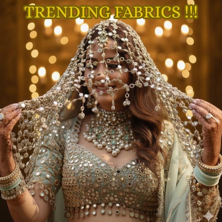 Width = 58 inches/ 147 cmsElegant Net Fabric with intricate sequin and bead embroidery, creating a shimmering leaf and wave-like pattern. The fabric has a luxurious, flowing texture, making it perfect for bridal wear, gowns, and evening ensembles. Features:✔ Net base with heavy sequin...