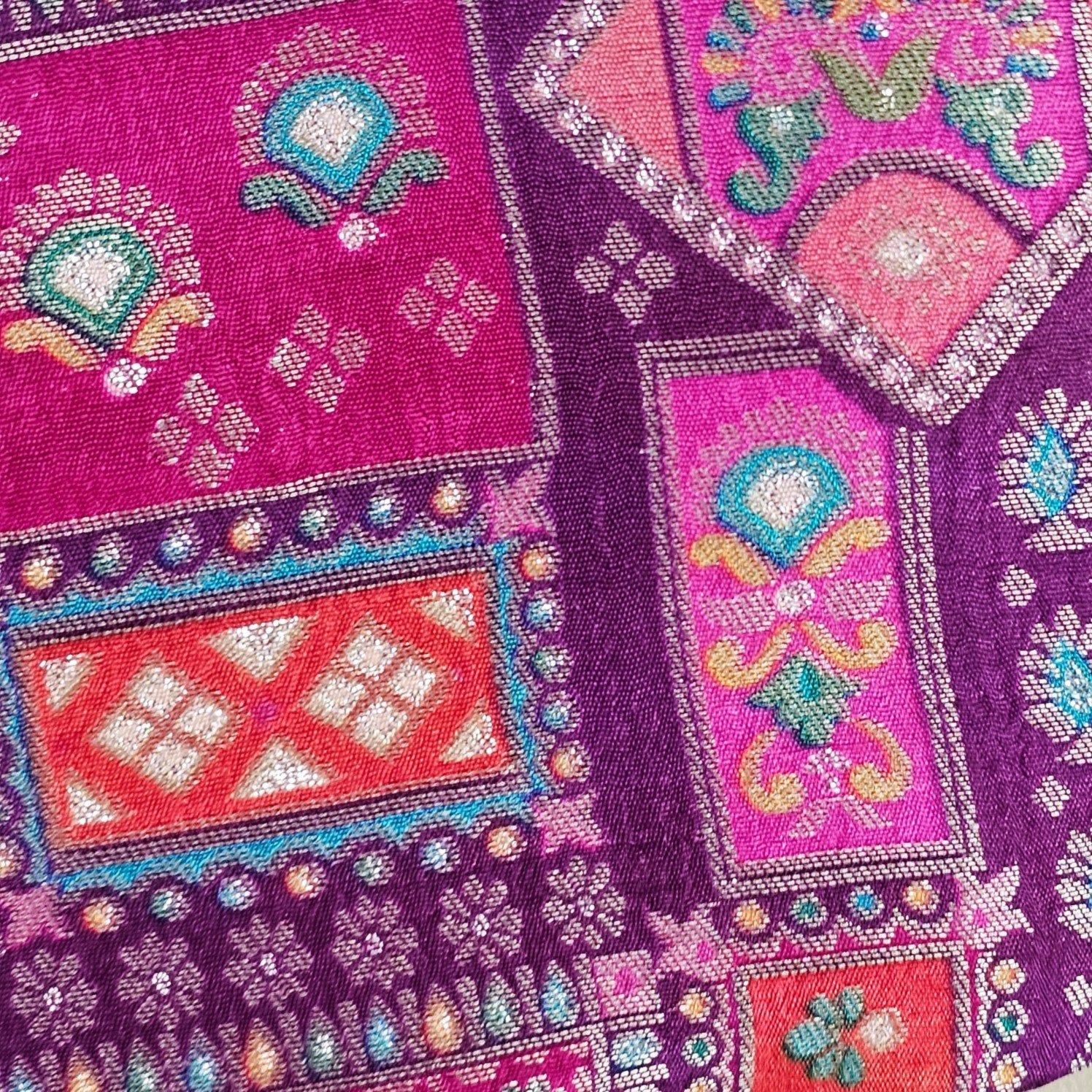 This is vibrant sleeveless brocade blouses featuring multicolor patch-style motifs in florals, paisleys, and geometric designs. The sleeveless cut and scoop round neckline give it a modern twist—ideal for festive occasions and Indo-western styling.