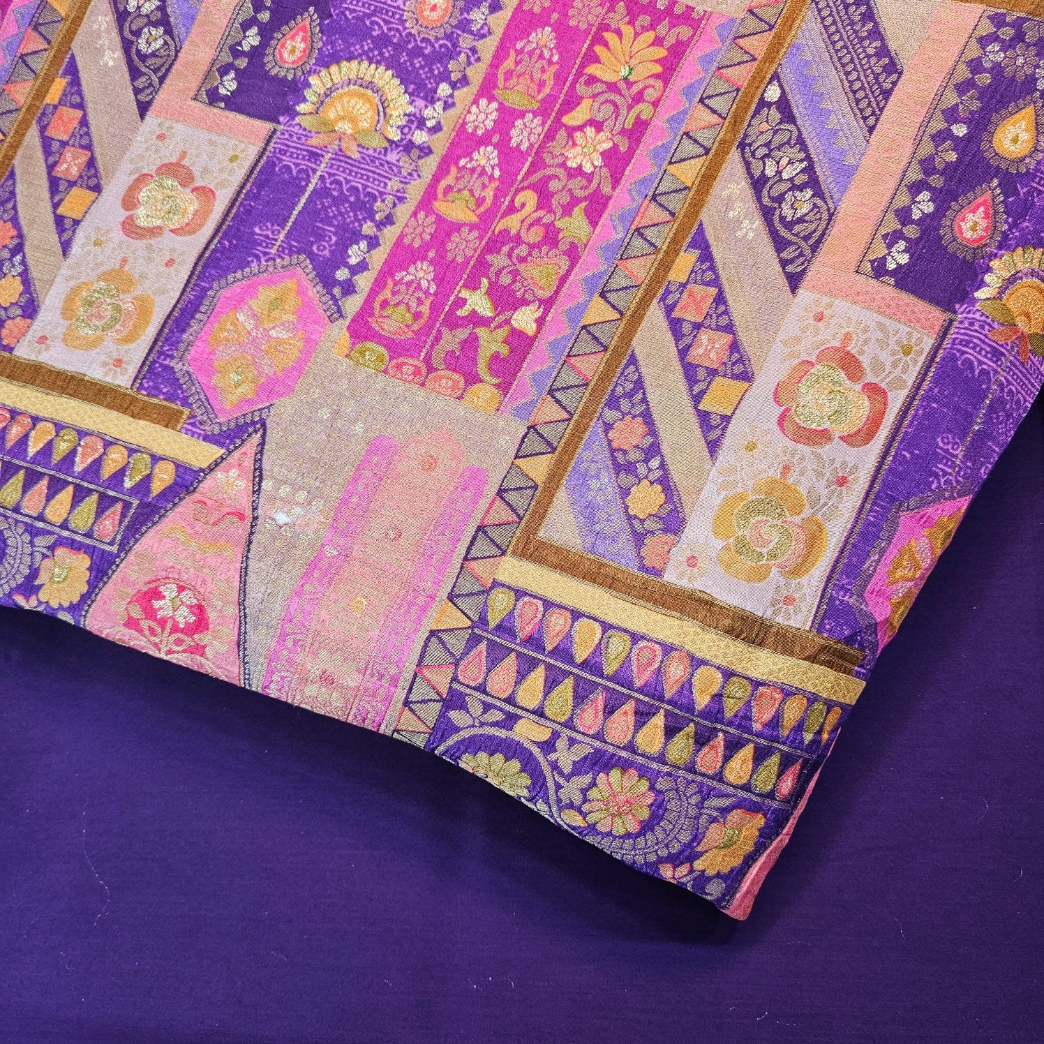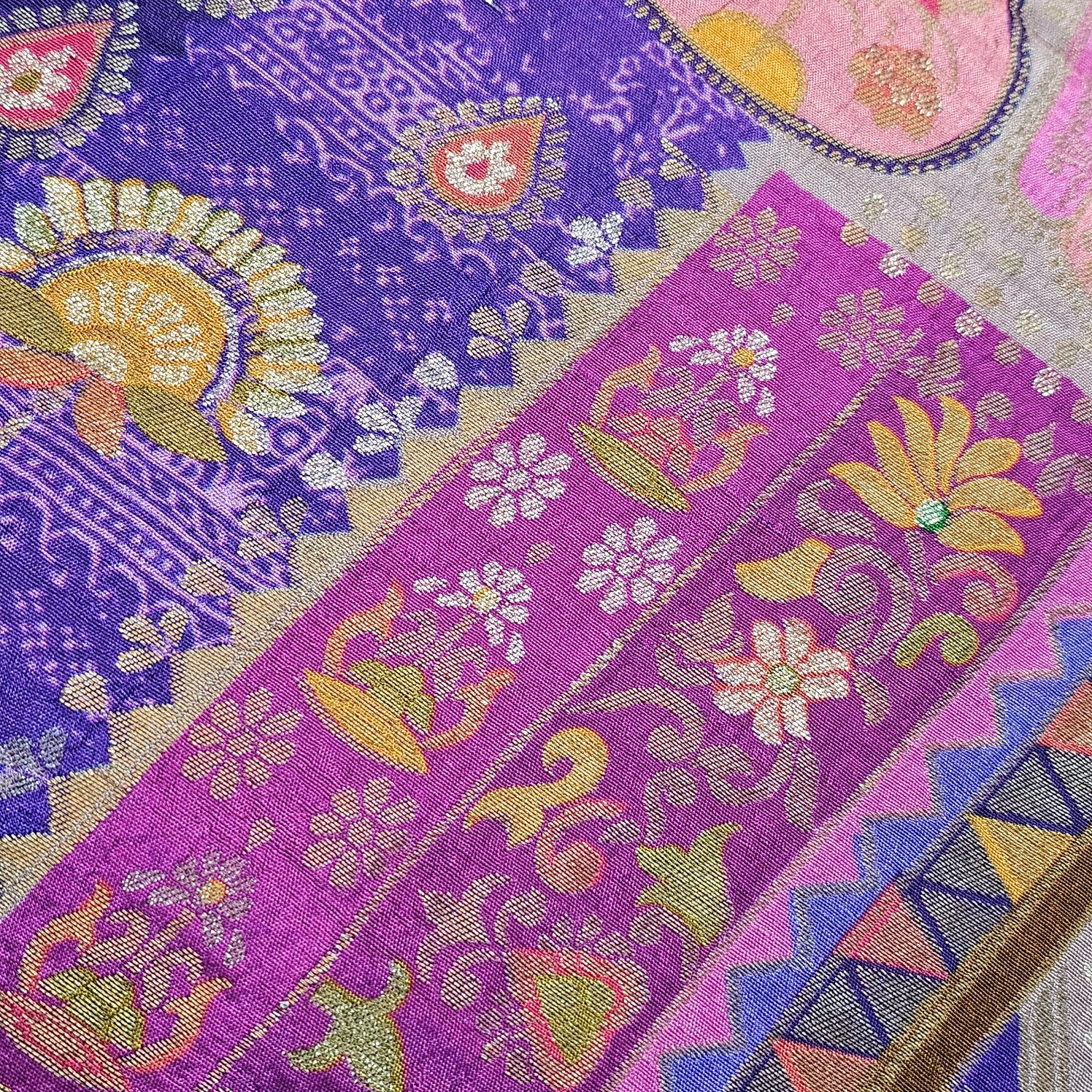 ✔ Premium Banarasi brocade with rich geometric and floral patterns