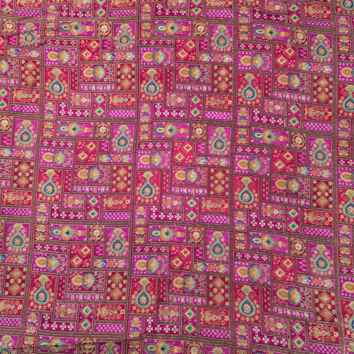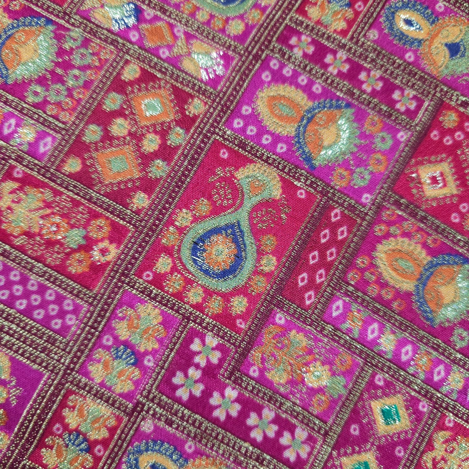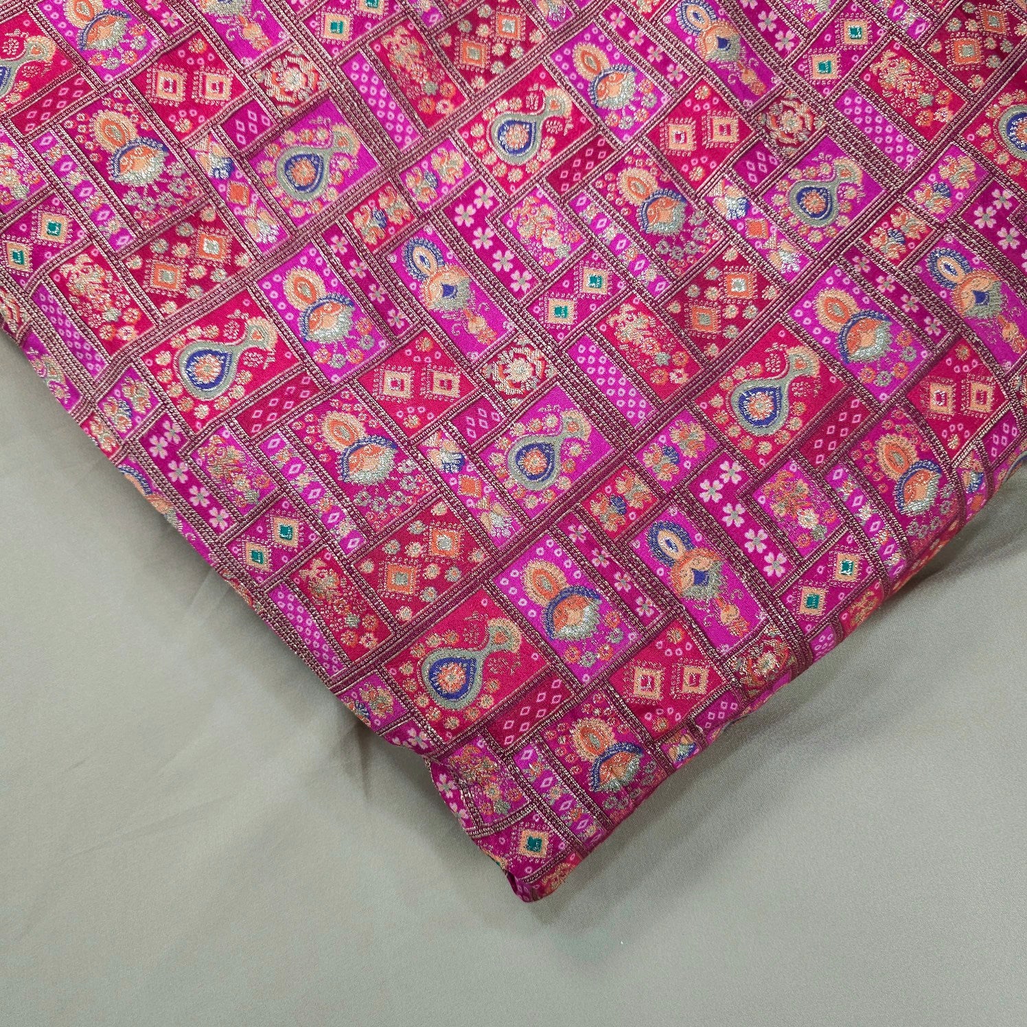 ✔ Premium Banarasi brocade with rich geometric and floral patterns