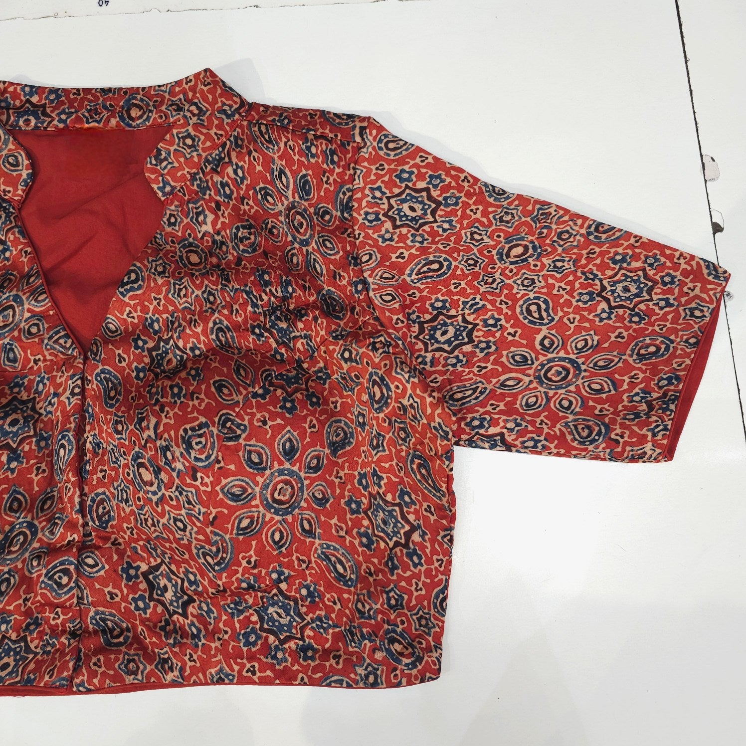Premium Modal Silk blouse featuring a beautiful hand-block print. Soft, breathable, and effortlessly stylish ideal for festive wear, casual gatherings, or elevating your everyday ethnic look with a refined touch.