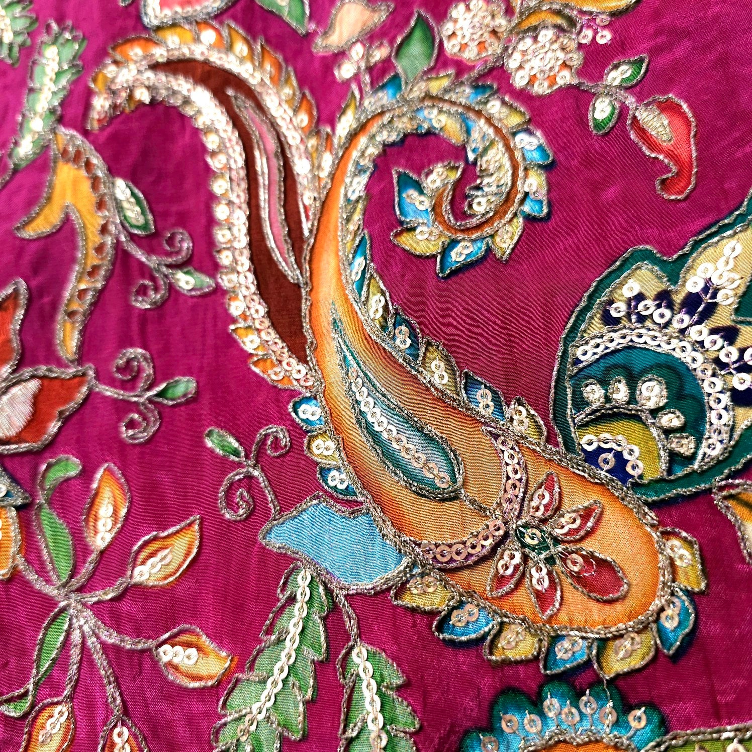 ✔ Deep crepe base with multicolor floral & paisley embroidery