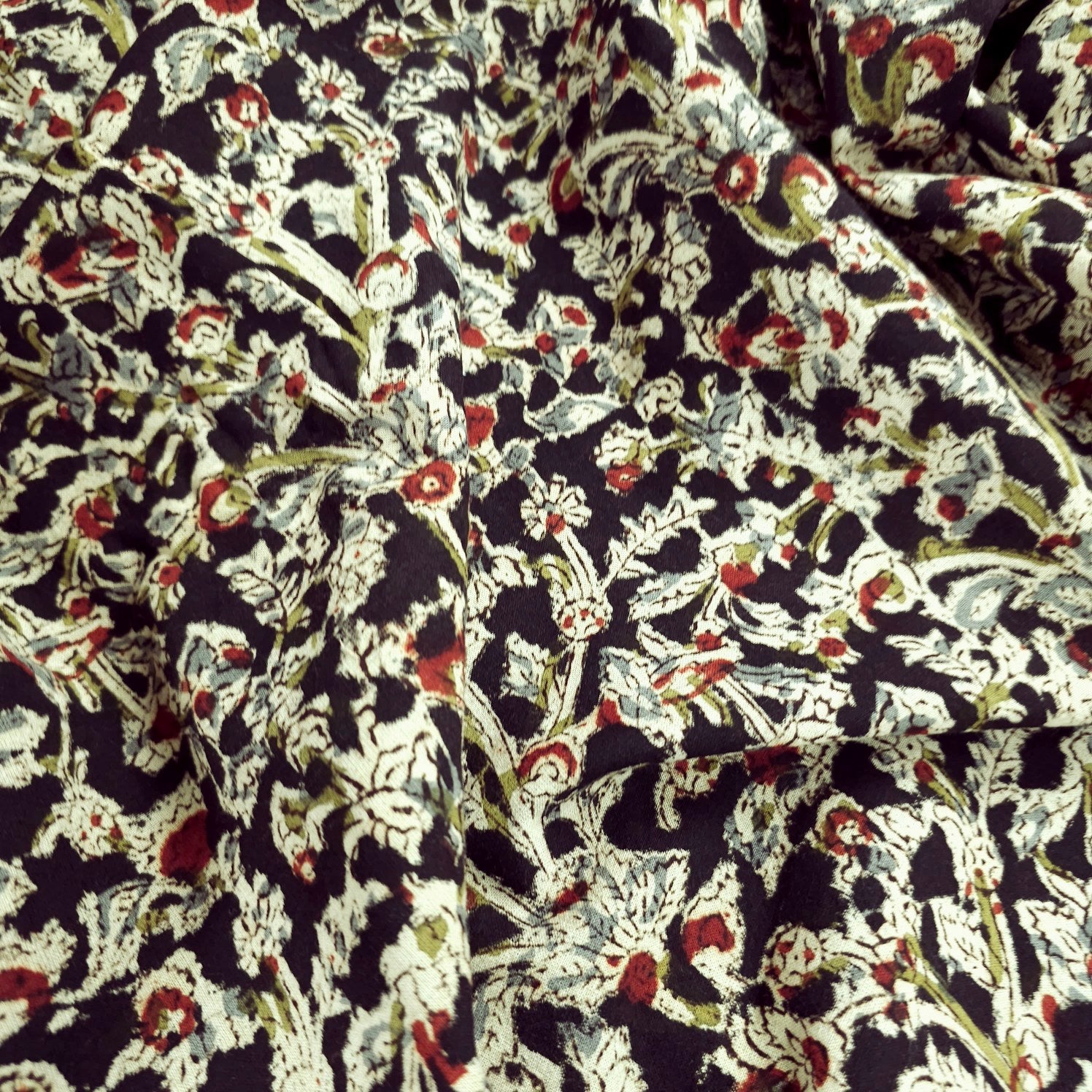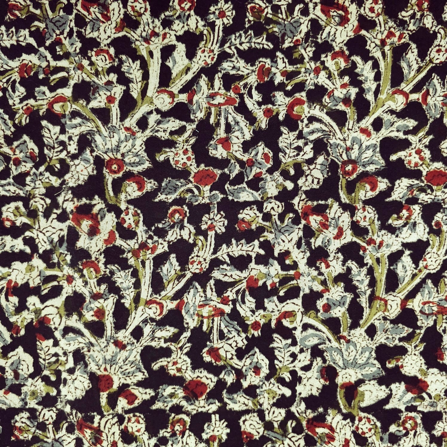 This all-over printed Kalamkari cotton fabric is a tribute to the age-old art form, featuring continuous, seamless designs across the entire fabric length. Crafted on soft and breathable pure cotton, the fabric showcases traditional floral, peacock, paisley, or mythological motifs rendered in earthy tones and natural dyes-inspired colors. Ideal for creating elegant ethnic outfits with a rustic yet refined charm.