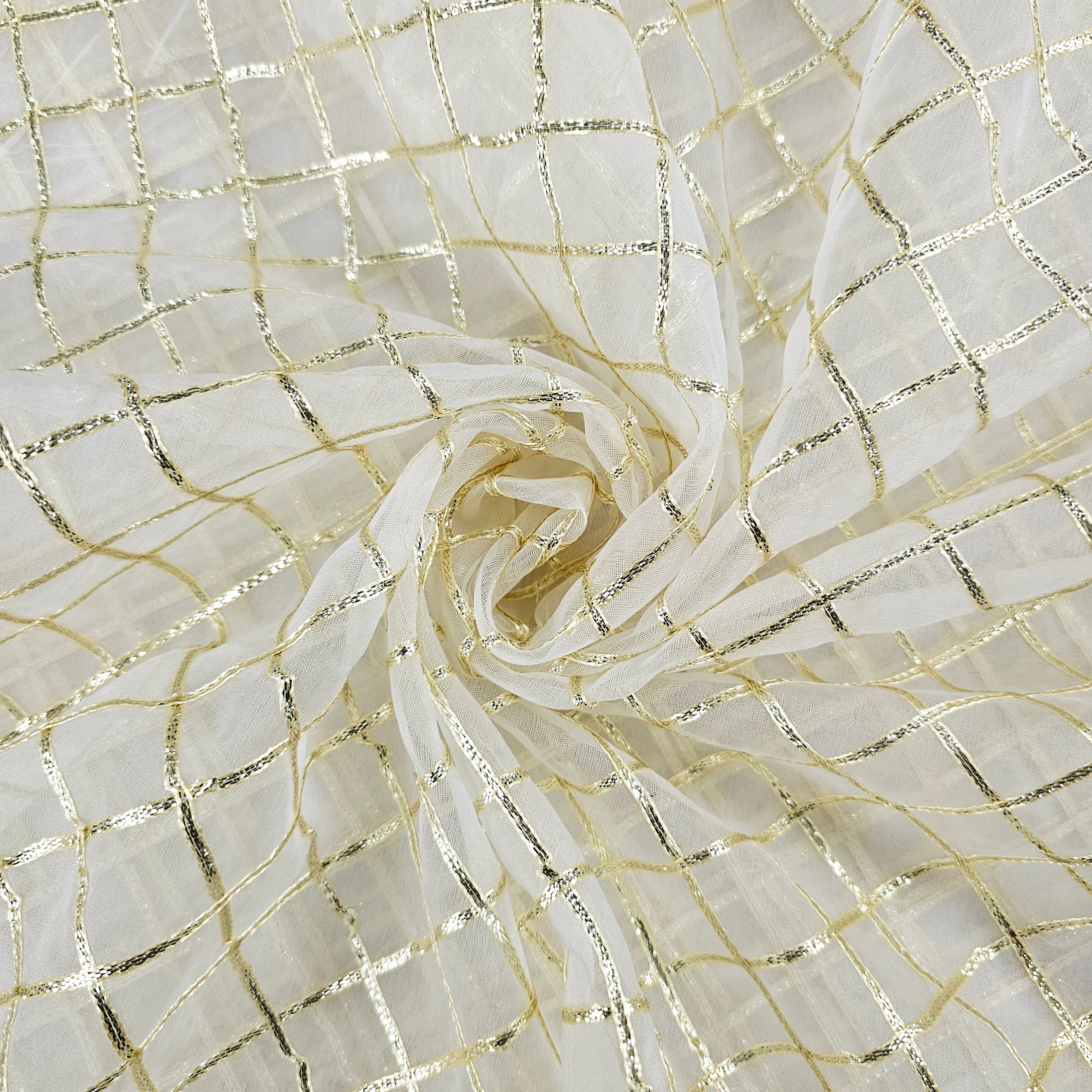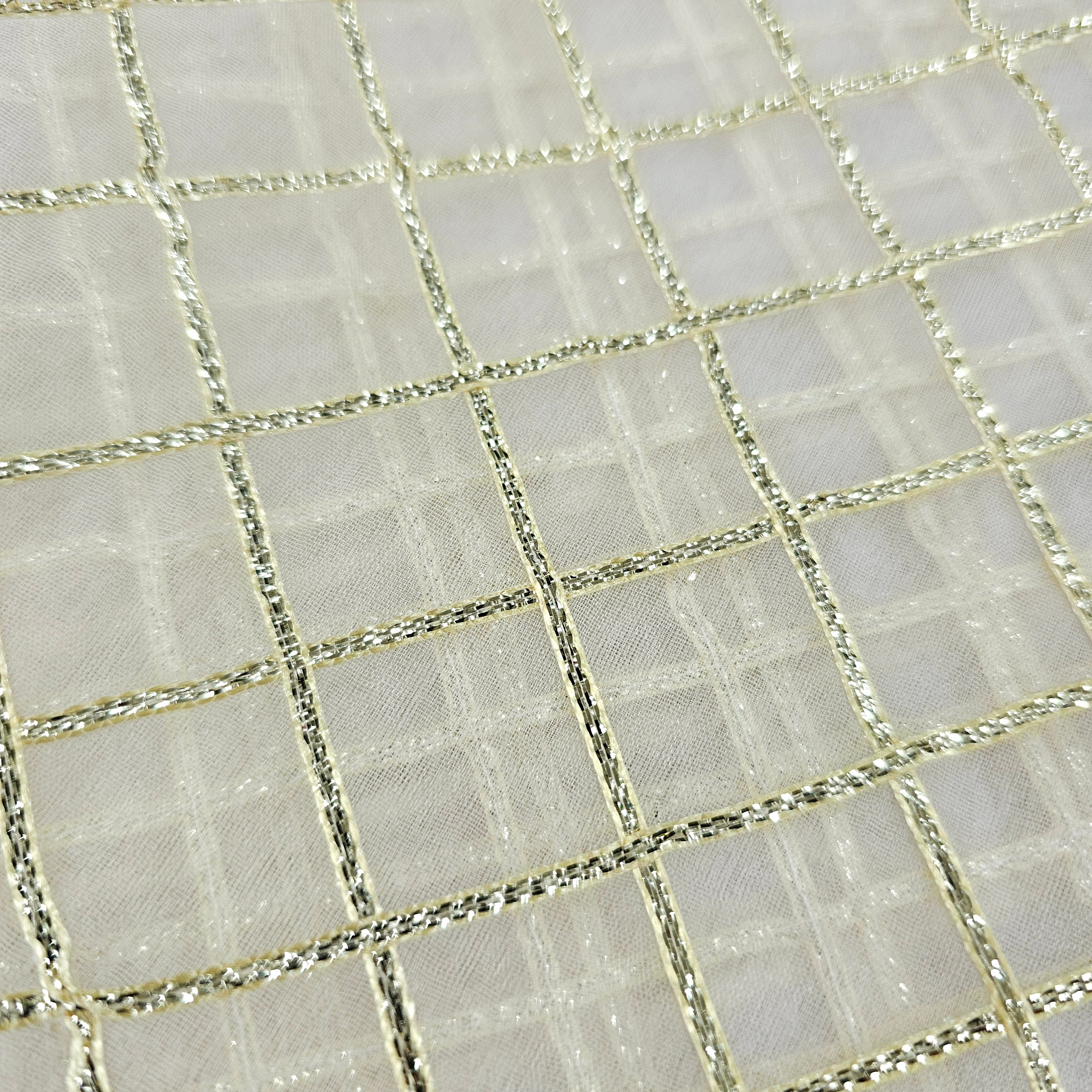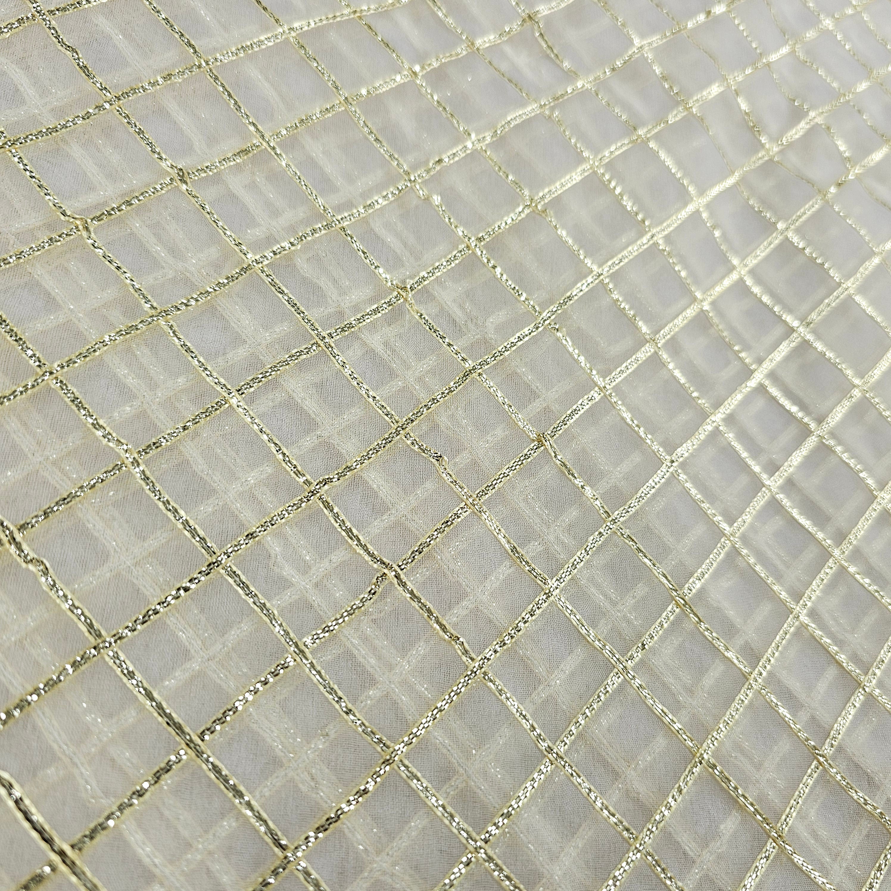 A timeless and versatile dyeable organza fabric adorned with traditional gold Gota Patti work. The handcrafted embellishments add a regal touch to the soft, flowing organza, making it perfect for festive and bridal wear.