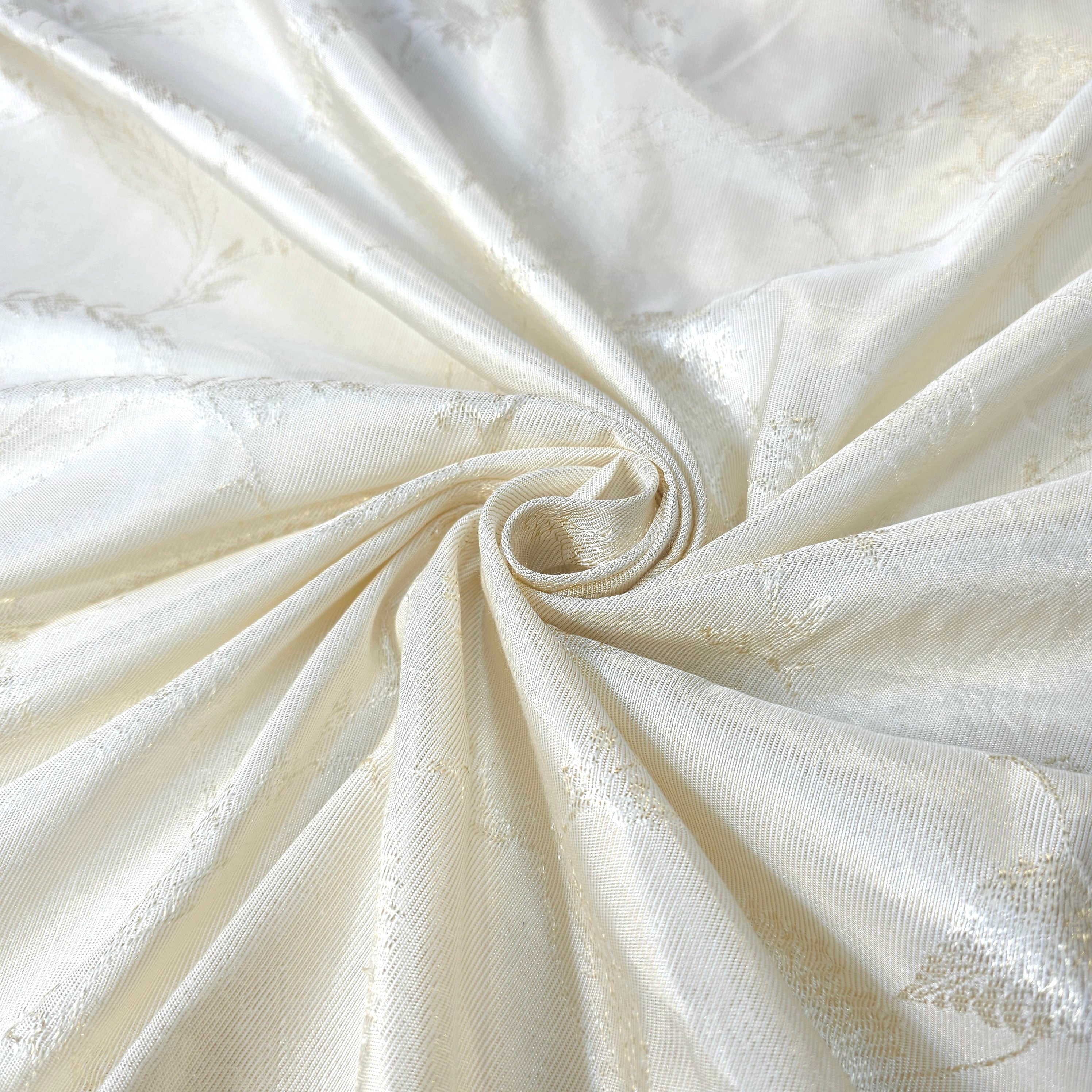 A delicate dyeable shimmer tissue fabric with floral & geometric pattern. Ideal for festive overlays and elegant occasion wear.