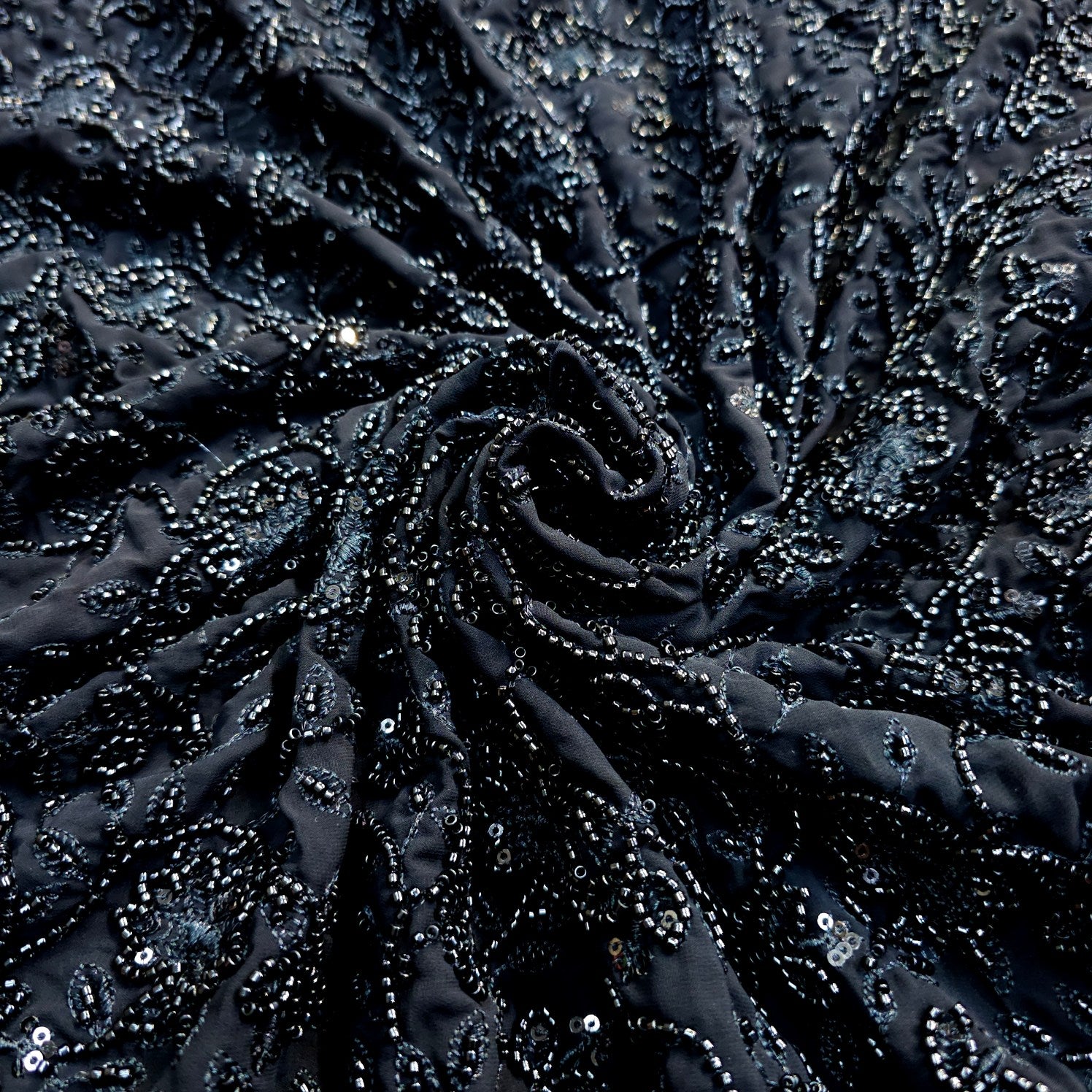 This stunning georgette fabric features detailed embroidery with sequins, and threadwork creating a perfect balance of traditional charm and modern elegance. Ideal for ethnic and bridal outfits.