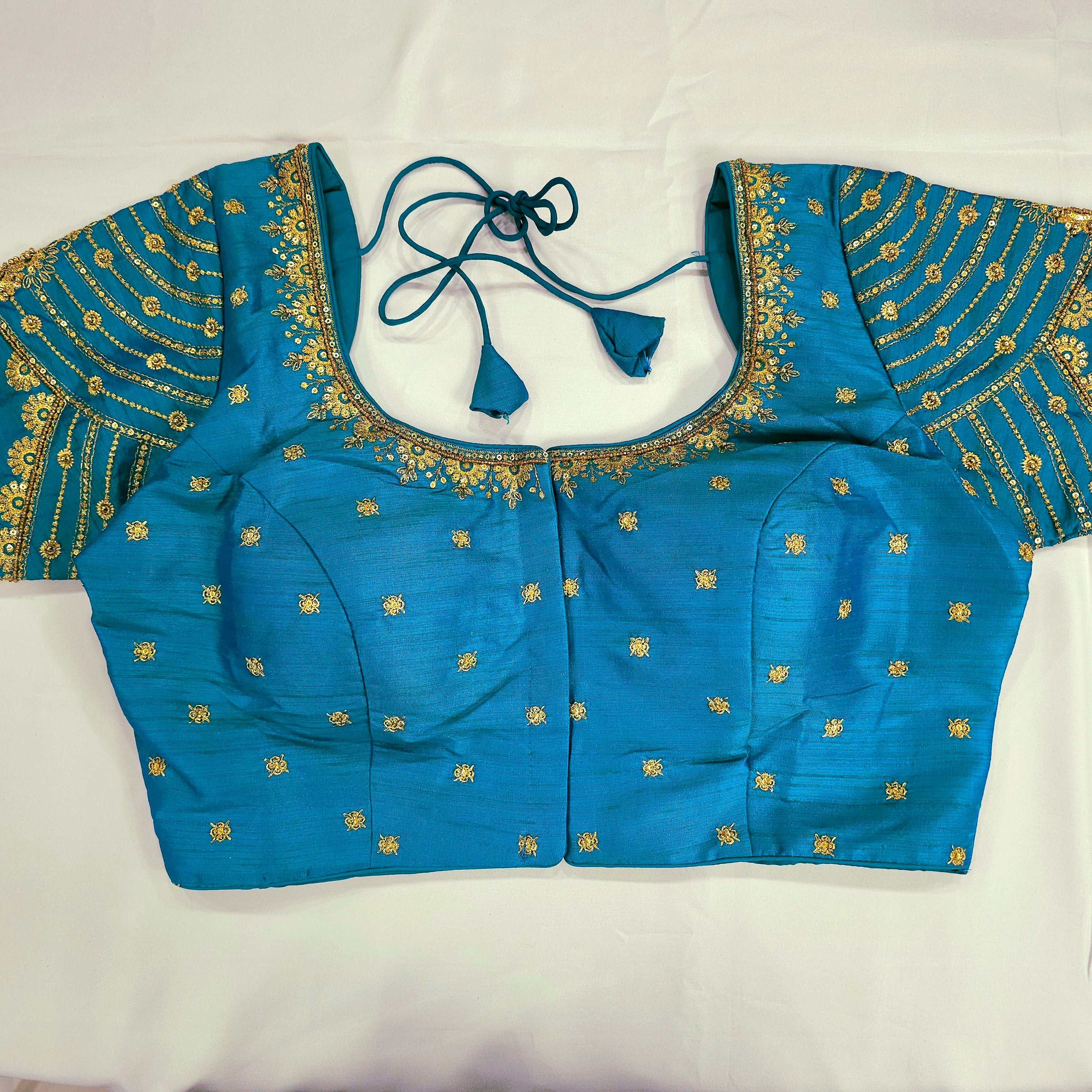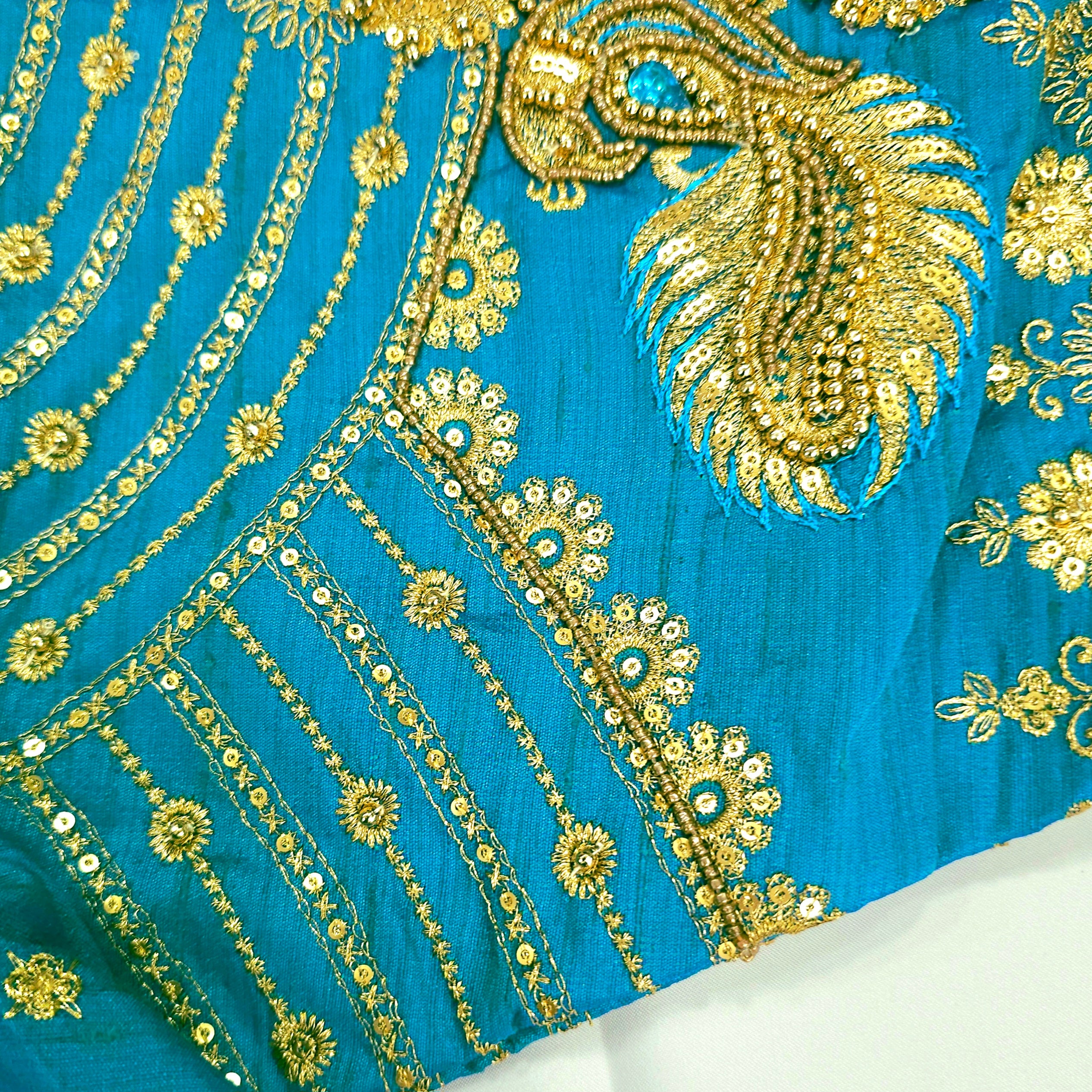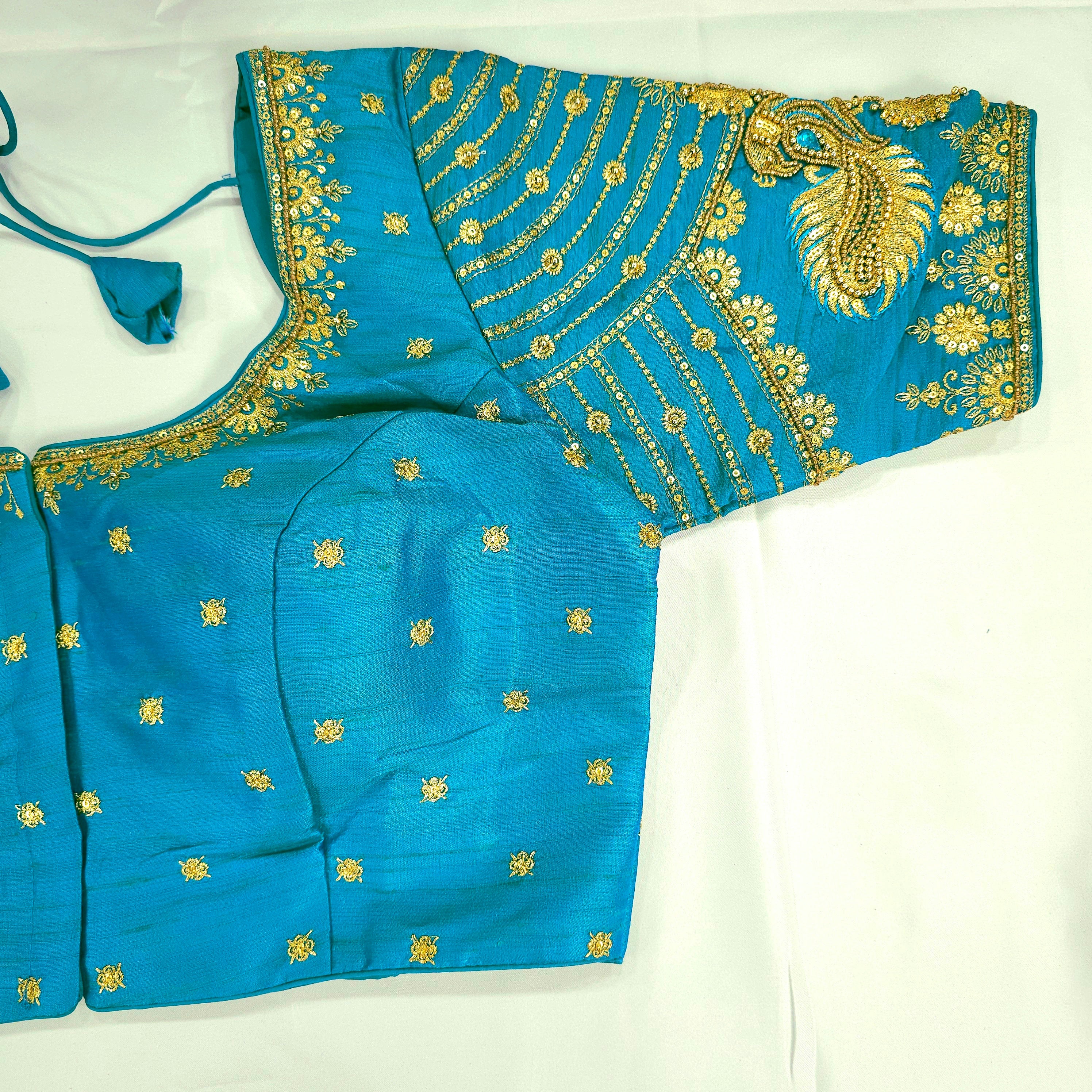 Elegant Silk blouse with rich zari embroidery and intricate peacock designs on the sleeves. Perfect for weddings, receptions, or festive celebrations.