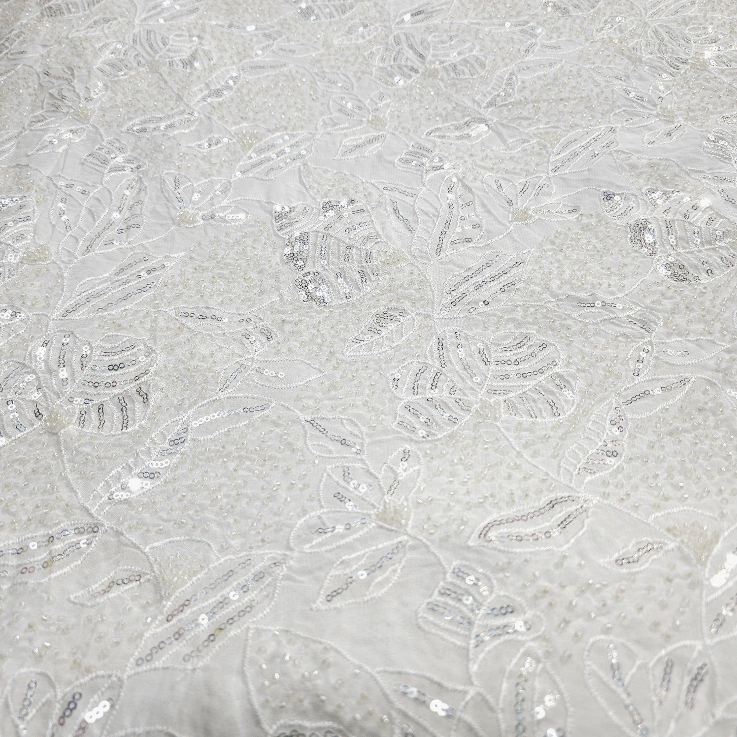 This stunning dyeable georgette fabric features detailed embroidery with sequins, and threadwork creating a perfect balance of traditional charm and modern elegance. Ideal for ethnic and bridal outfits.