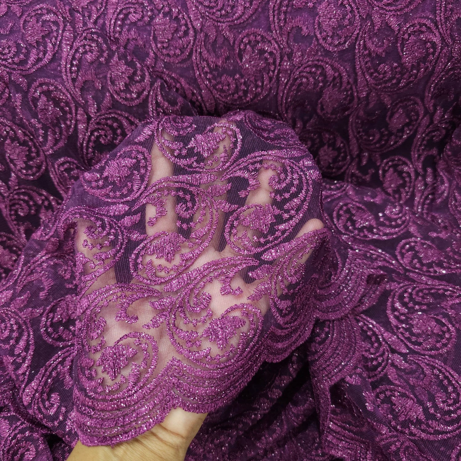✔ Premium embroidered net with ornate paisley/floral patterns