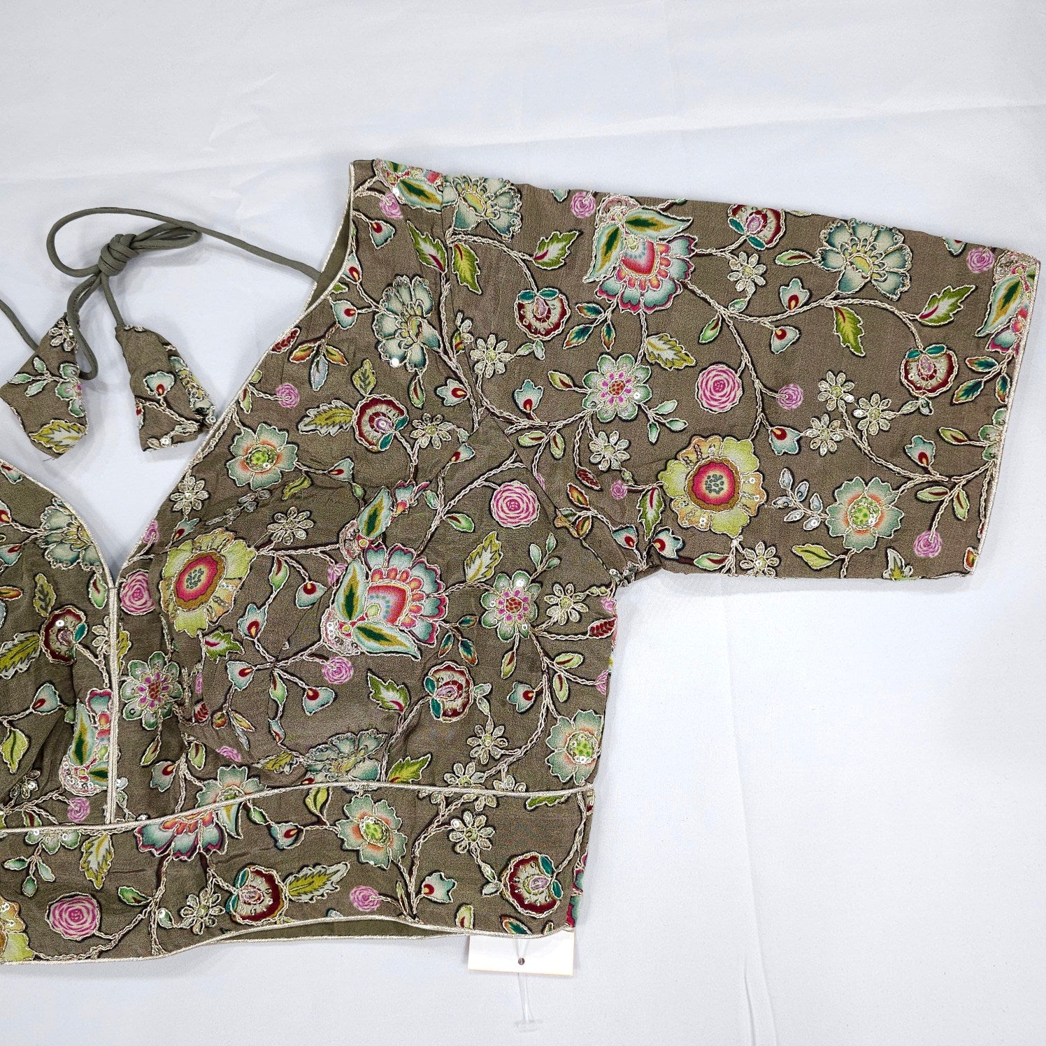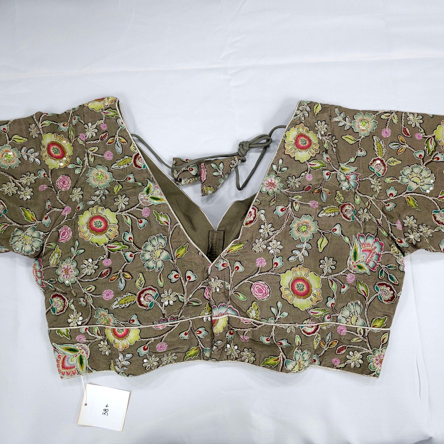 Elegant Silk blouse with intricate floral Zari designs. Perfect for weddings, receptions, or festive celebrations.