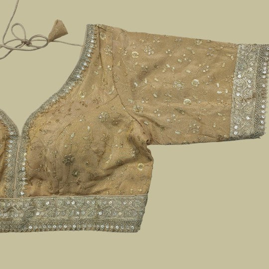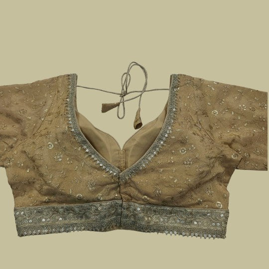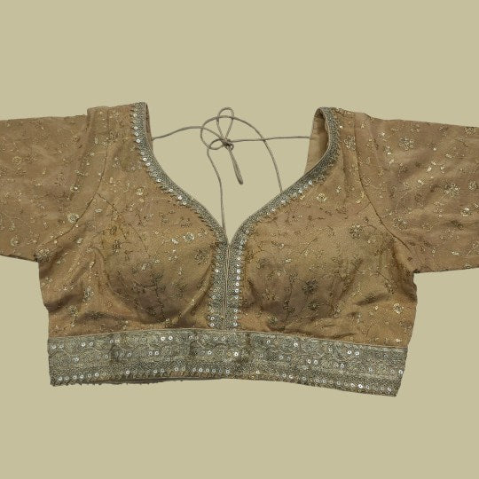 Premium Embroidered Shimmer blouse with zari work and sequins work. Ideal for festive wear, casual gatherings, or elevating your everyday ethnic look with a refined touch.