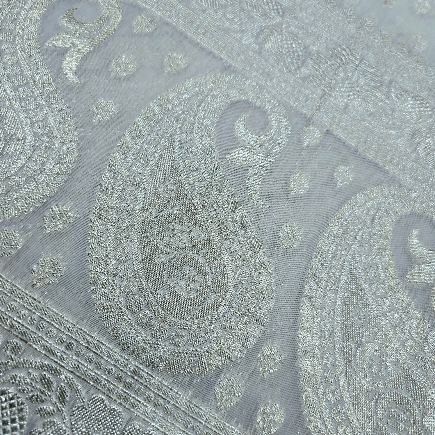 This elegant dyeable fabric is crafted from premium banaras brocade, offering a subtle metallic sheen that enhances its regal appeal. Embellished with delicately woven paisley borders and all over buttis across the body, this fabric is a perfect blend of sophistication and festivity. It’s a go-to choice for statement ethnic wear with a refined sparkle.