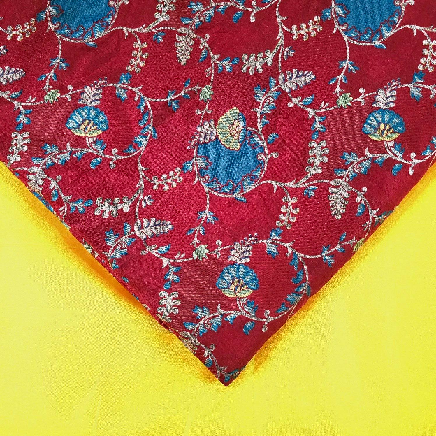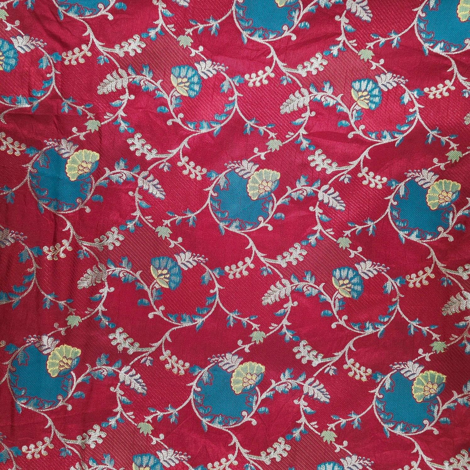 A luxurious jacquard fabric featuring intricate floral motifs and threadwork. The elegant weaving technique adds texture and richness, making it a perfect choice for ethnic and festive wear.