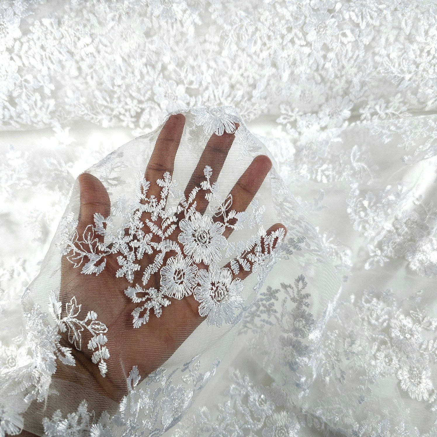 ✔ Fine transparent net with soft drape and airy texture