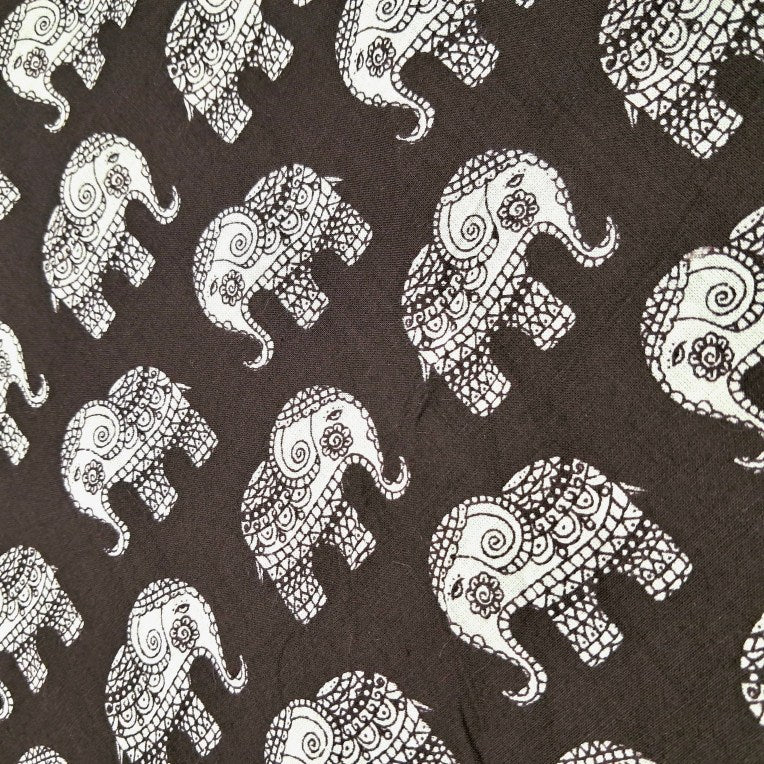 Playfully printed cotton fabric featuring a charming elephant motif in vibrant colors. The quirky and artistic design adds a fun and lively touch. Soft, breathable, and perfect for casual and creative projects.