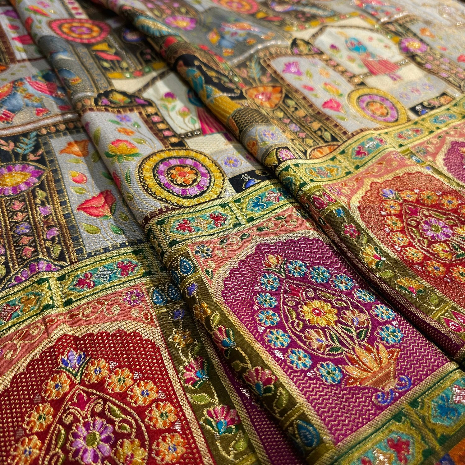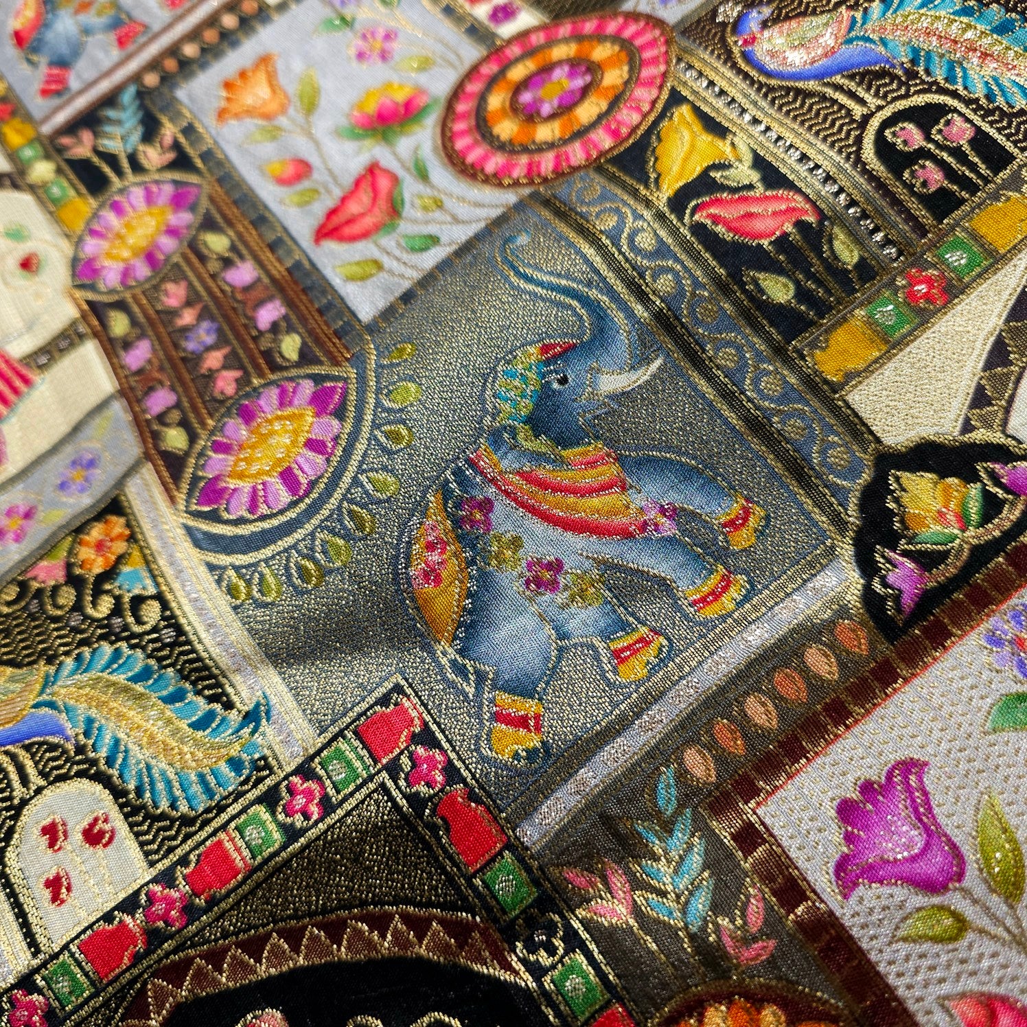 ✔ Premium Banarasi brocade with rich geometric, elephant and floral patterns