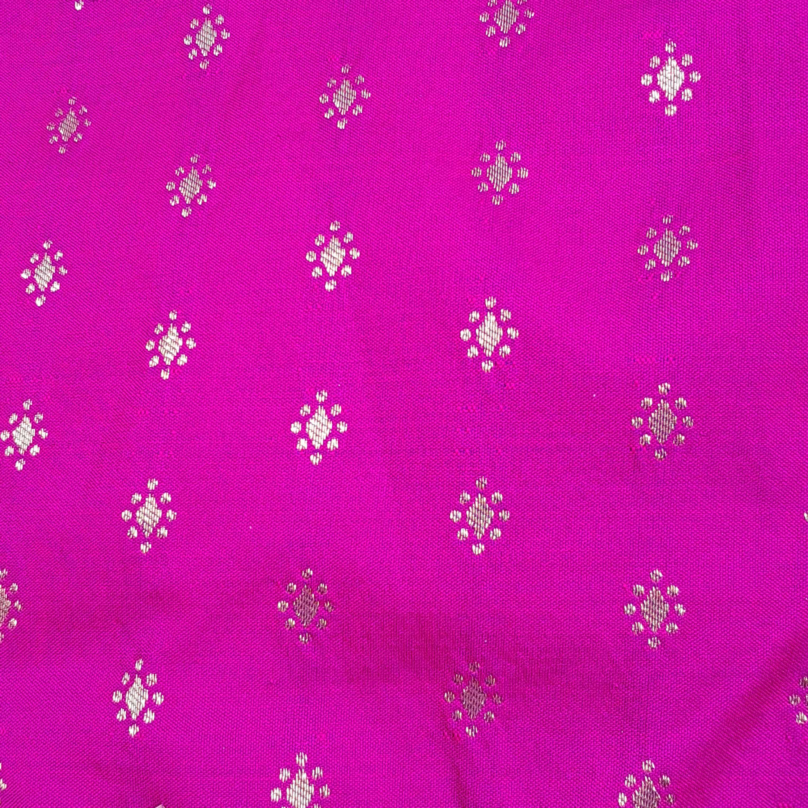 This is a bright red color traditional zari-woven blouses featuring gold butti motifs on a vibrant red base. The deep neckline and sleeveless cut lend a bold yet graceful look, perfect for weddings, festivals, or bridal celebrations.