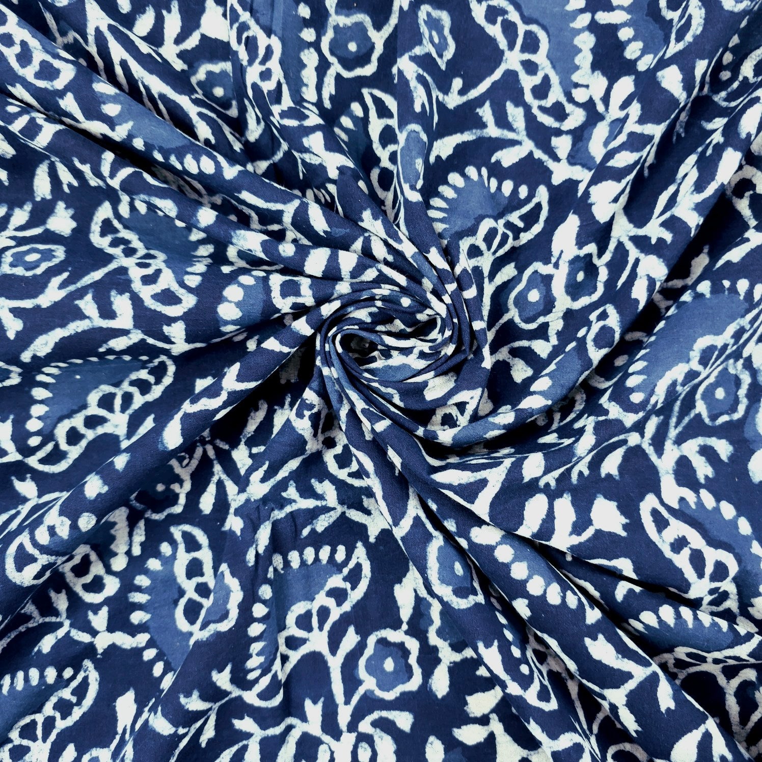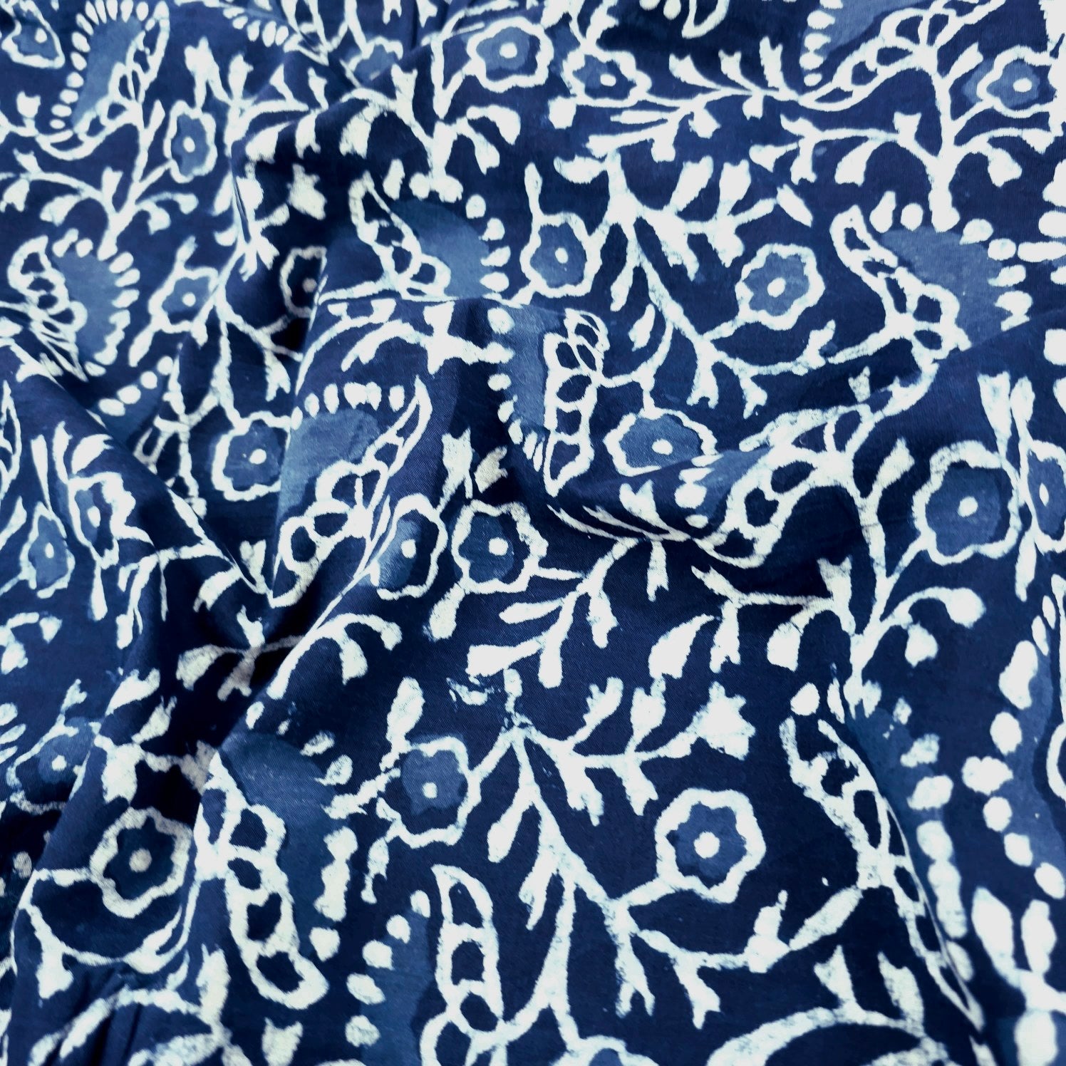 Elevate your wardrobe with this Cotton Indigo Fabric, dyed in deep, natural indigo tones that never go out of style. Crafted from pure cotton, it offers unmatched comfort and breathability, making it a perfect choice for warm-weather wear. Whether styled into ethnic or fusion garments, its rich color and soft texture bring a timeless charm and effortless grace.