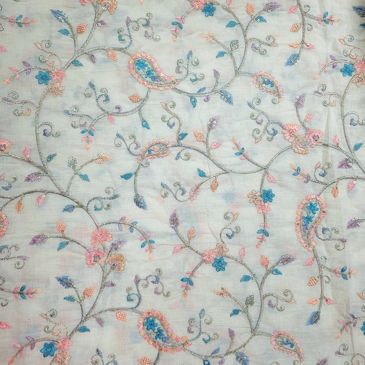 These elegant fabrics are designed on a soft, semi-sheer base and feature delicate floral embroidery, highlighted with pastel threads and shimmering sequins. The intricate motifs create a charming, festive look that’s perfect for ethnic ensembles with a light, graceful appeal.