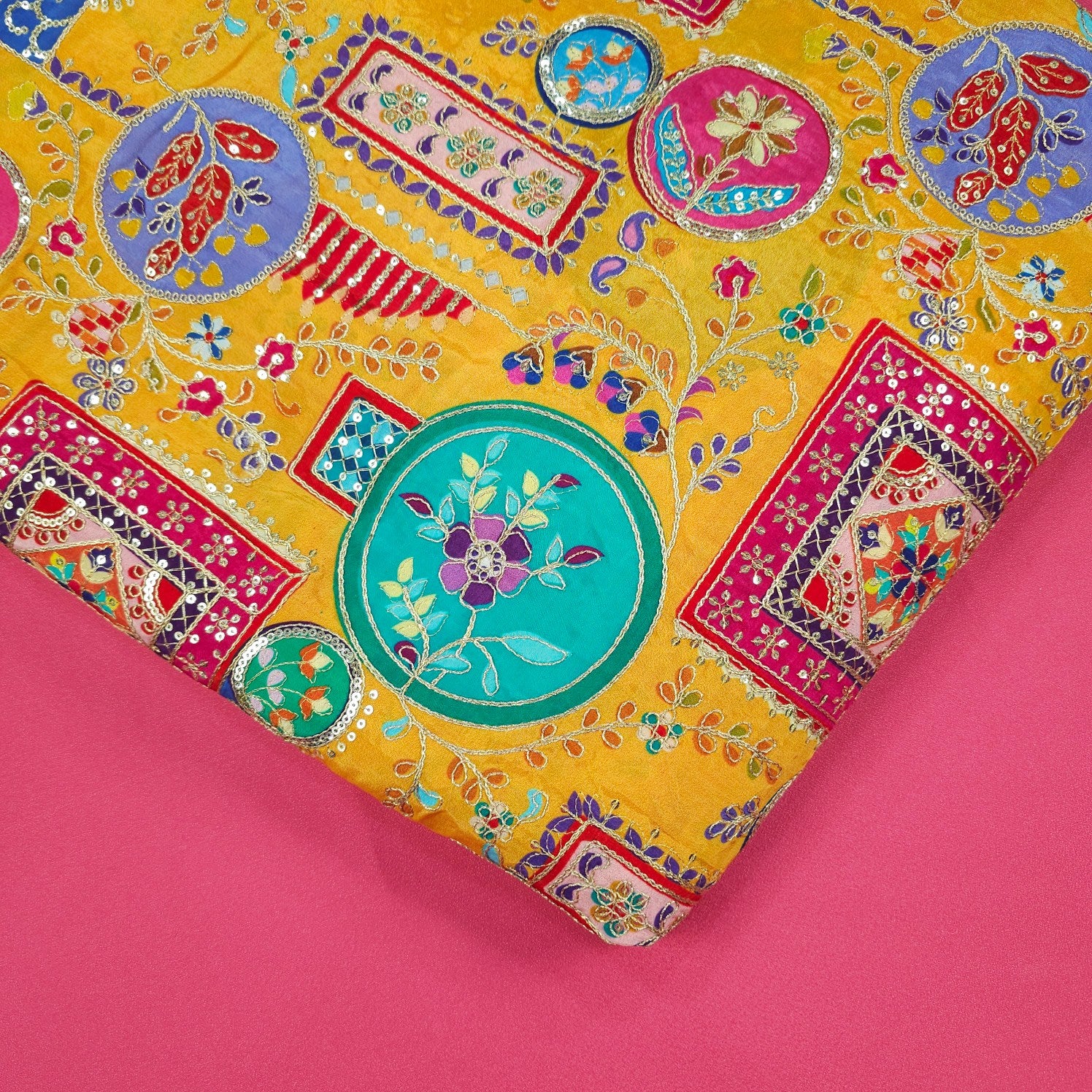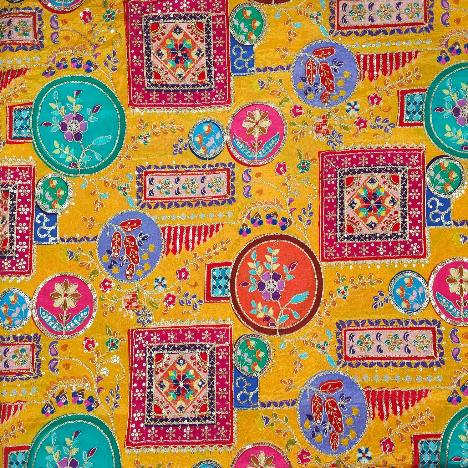 These elegant fabrics are designed on a soft, semi-sheer base and feature delicate floral embroidery, highlighted with pastel threads and shimmering sequins. The intricate motifs create a charming, festive look that’s perfect for ethnic ensembles with a light, graceful appeal.