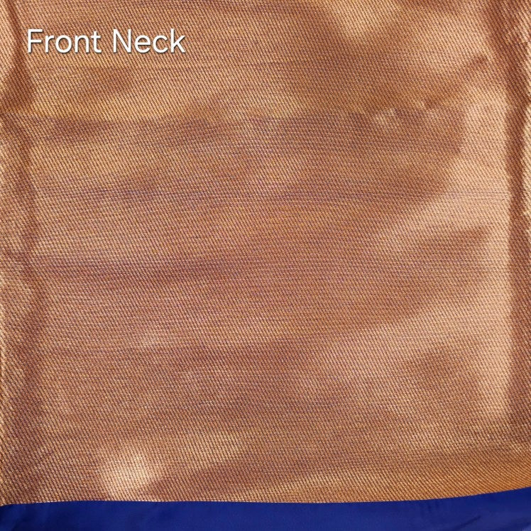This Paithani blouse piece features a stunning traditional weave with vibrant motifs of parrots and floral vines on a golden zari base. The back neck is richly designed with a symmetrical garden-like motif showcasing parrots perched around kalash and floral trees, giving it a festive and opulent appeal. The sleeves continue the theme with a graceful parrot sitting on a floral branch, maintaining elegance and tradition.