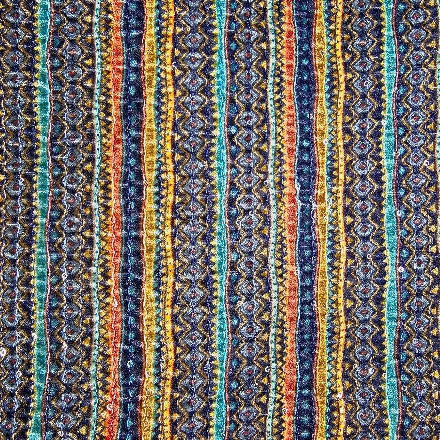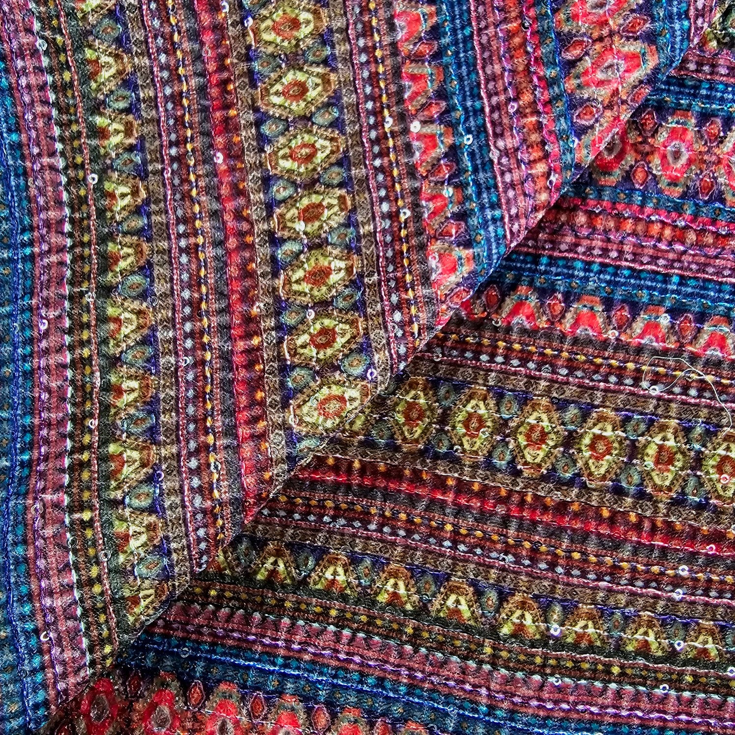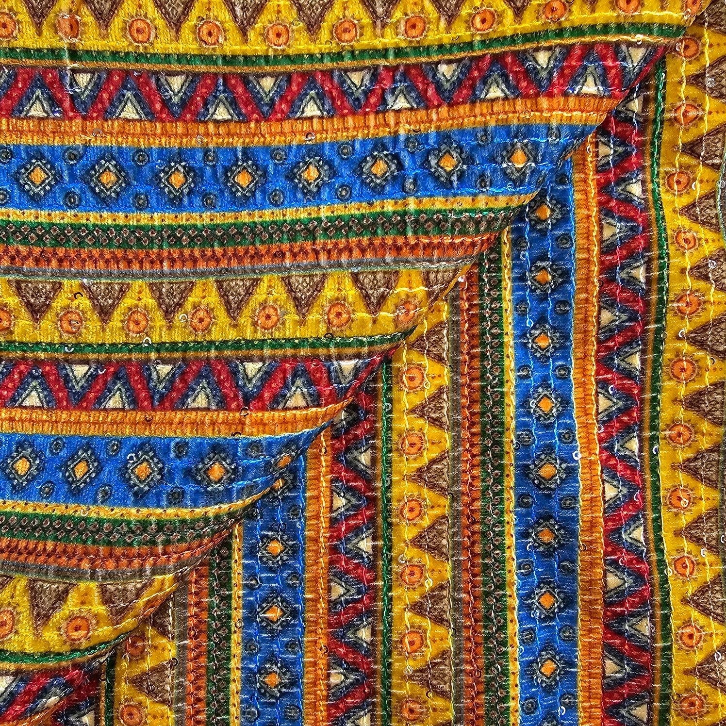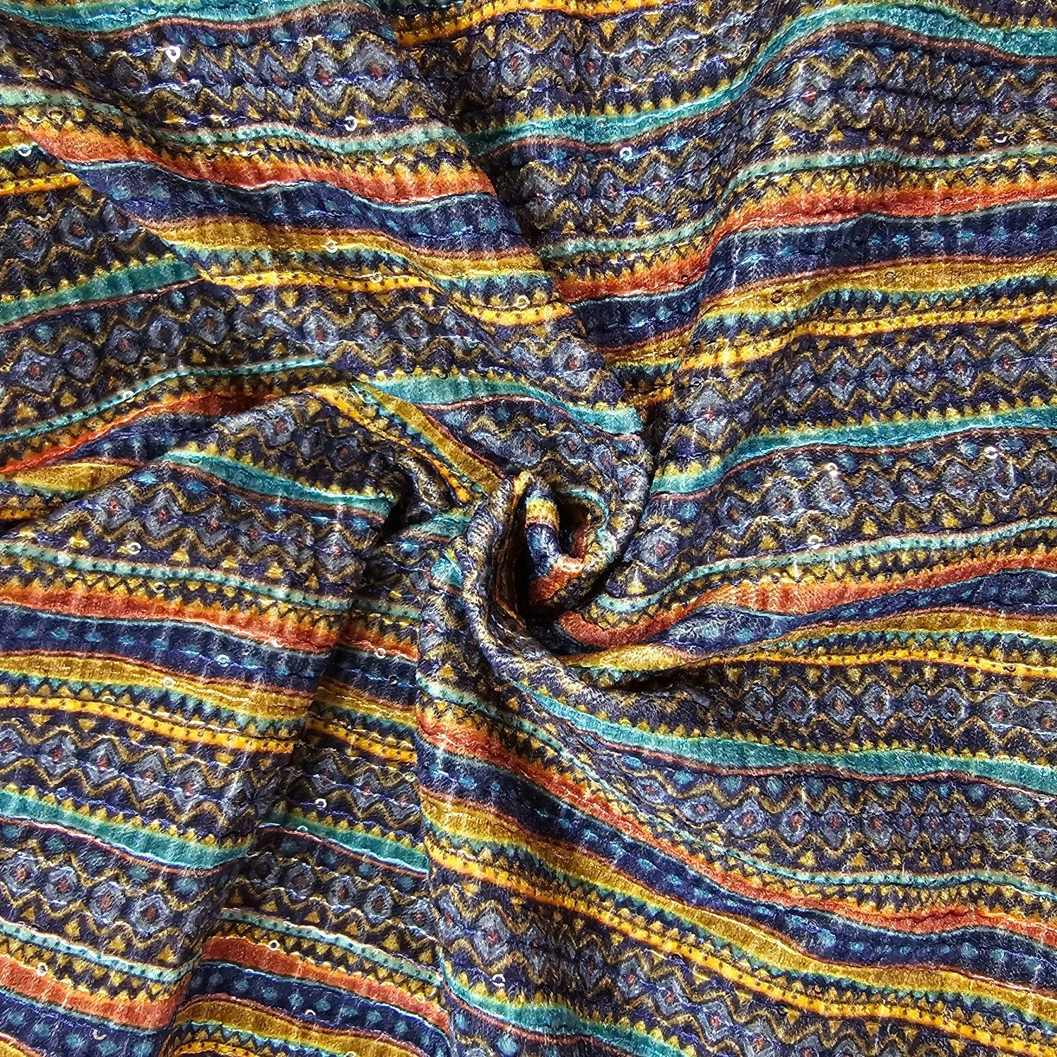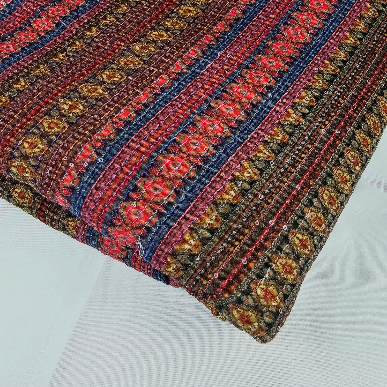 Elegant velvet fabric with fine thread embroidery and shimmering sequins. The intricate patterns and soft texture give it a royal and stylish look. Perfect for festive and party wear.