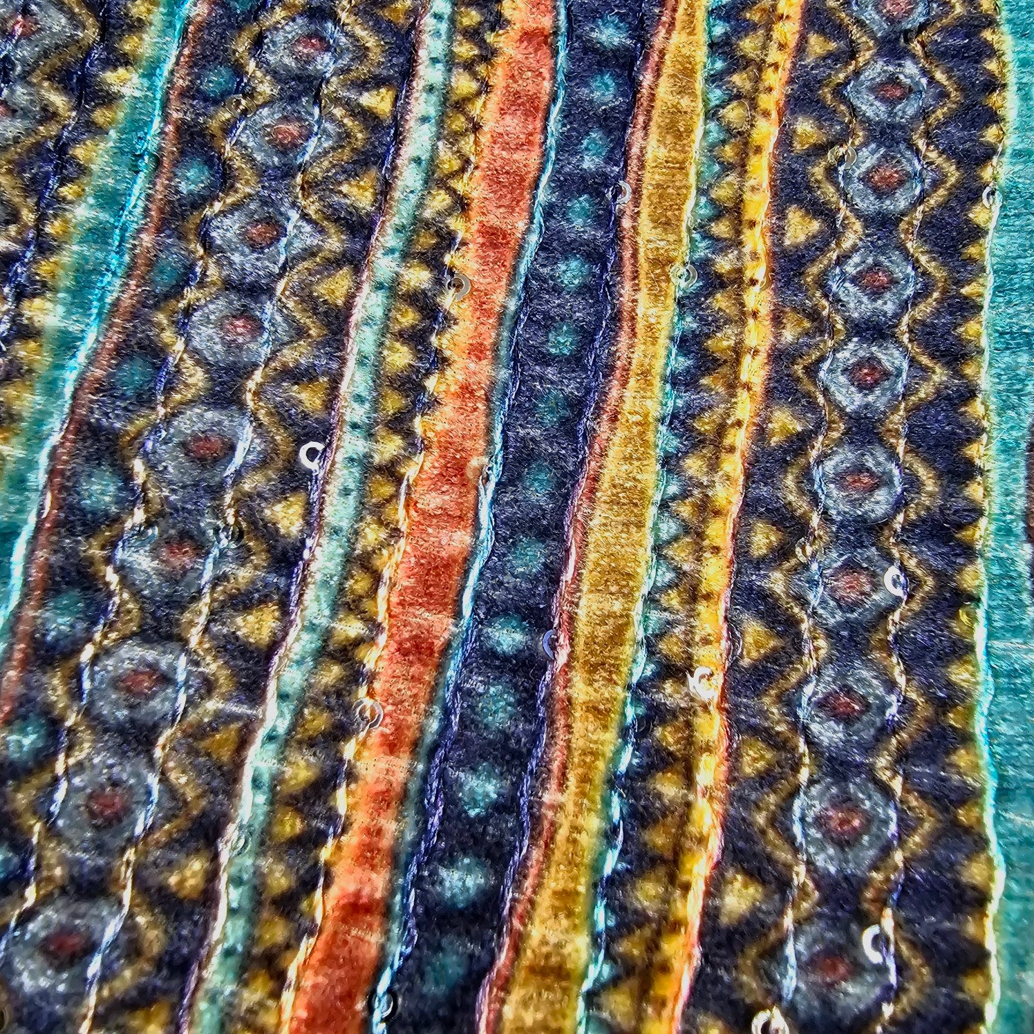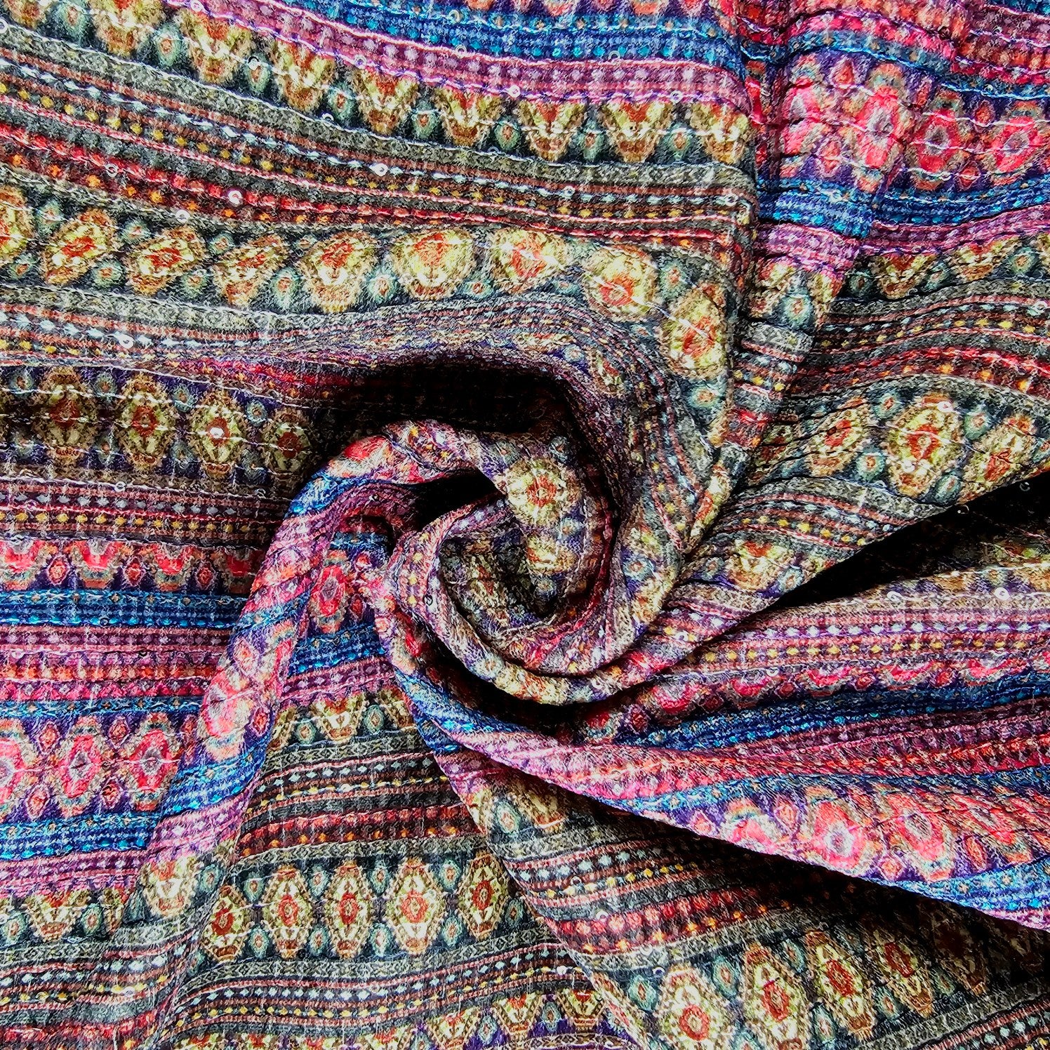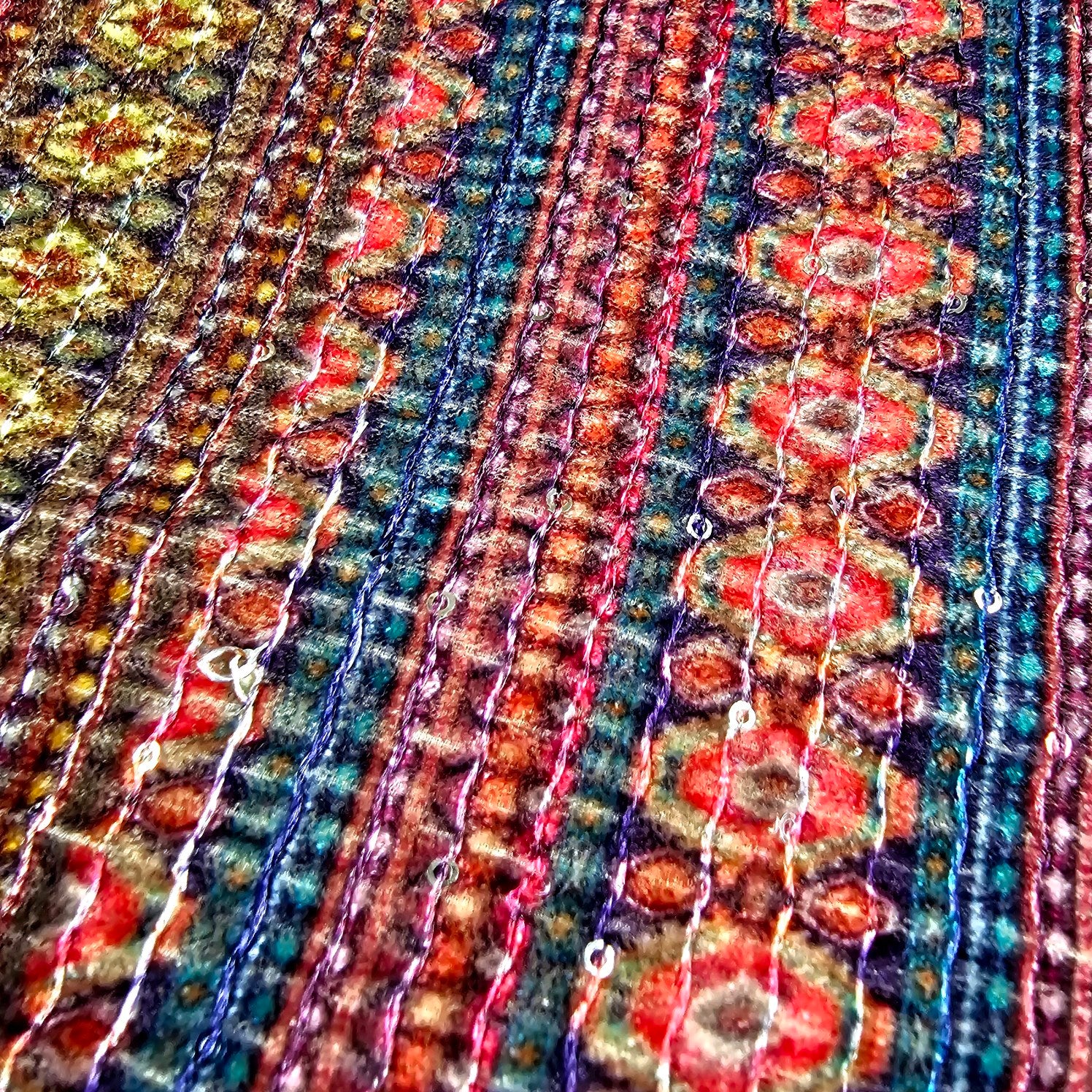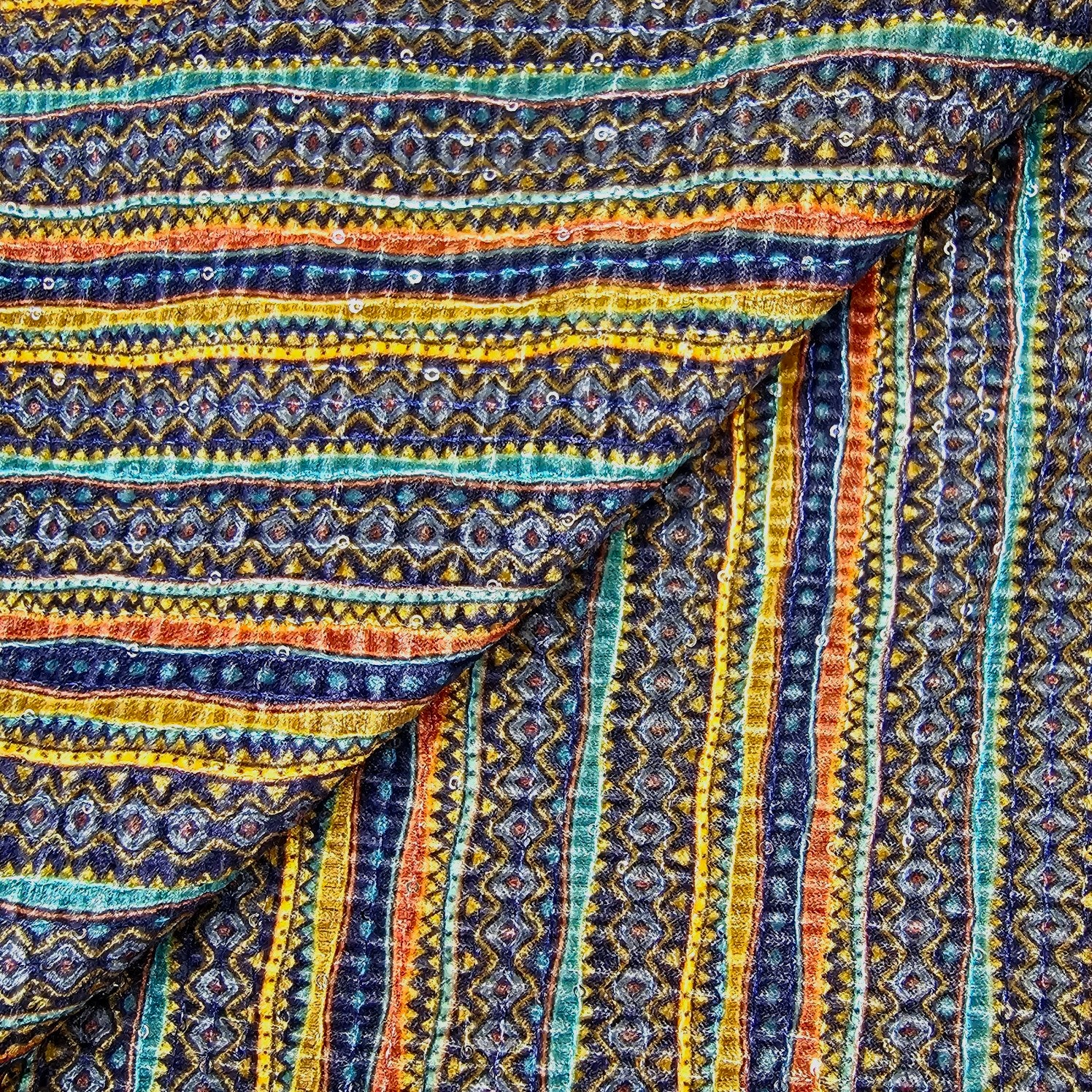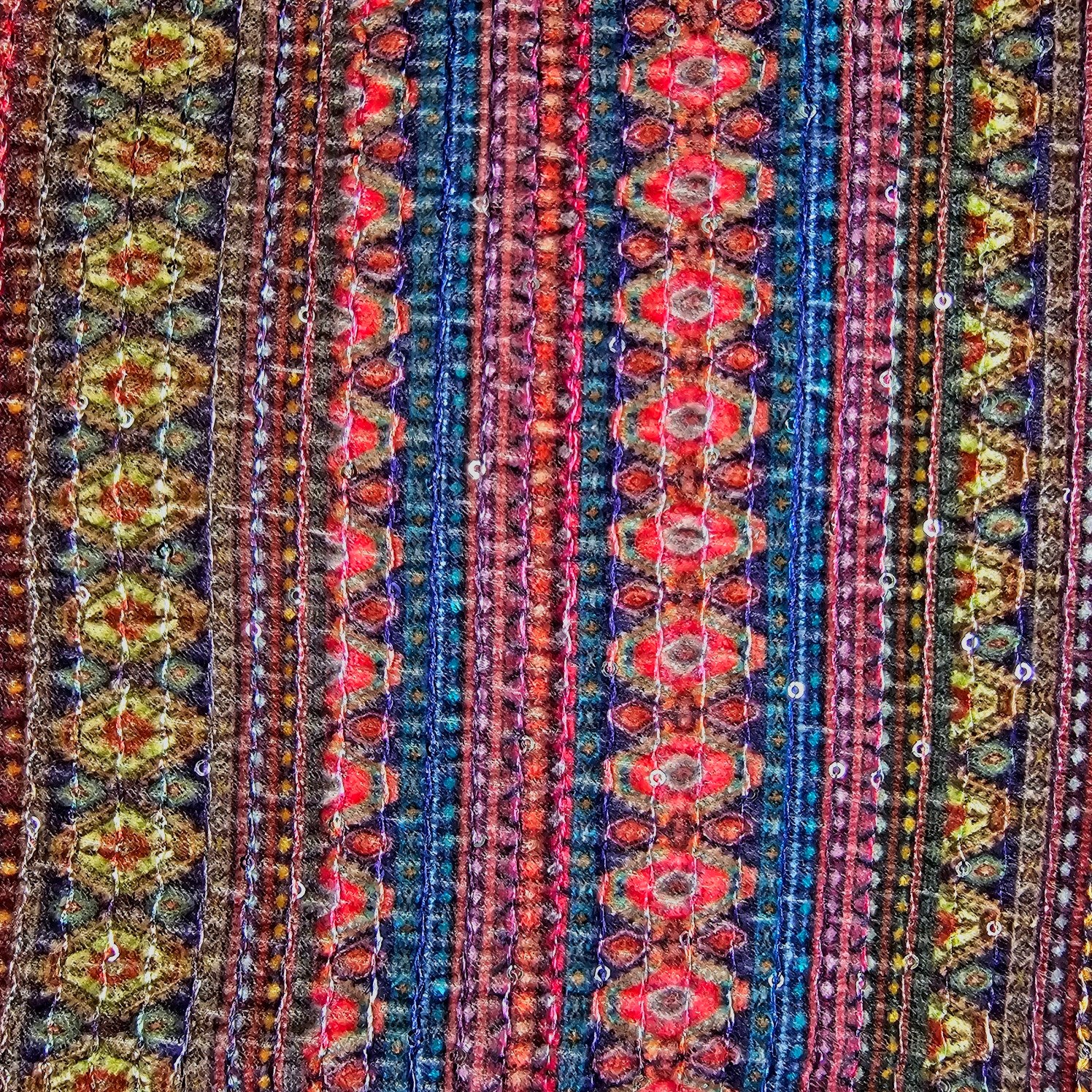 Elegant velvet fabric with fine thread embroidery and shimmering sequins. The intricate patterns and soft texture give it a royal and stylish look. Perfect for festive and party wear.