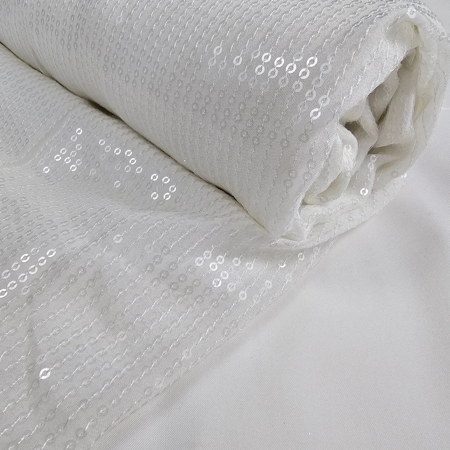 Graceful georgette fabric adorned with shimmering sequins in a linear pattern. The lightweight and sheer texture gives it an delicate appeal, perfect for creating elegant and glamorous ensembles. Ideal for sarees, lehengas, gowns, and festive wear.