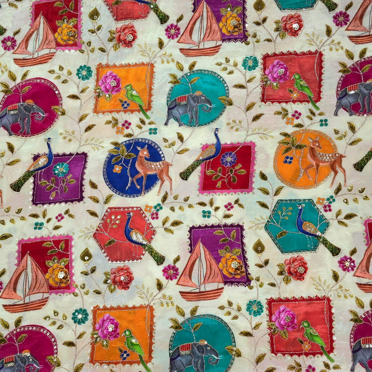 These elegant fabrics are designed on a soft, semi-sheer base and feature delicate floral embroidery, highlighted with pastel threads and shimmering sequins. The intricate motifs create a charming, festive look that’s perfect for ethnic ensembles with a light, graceful appeal.