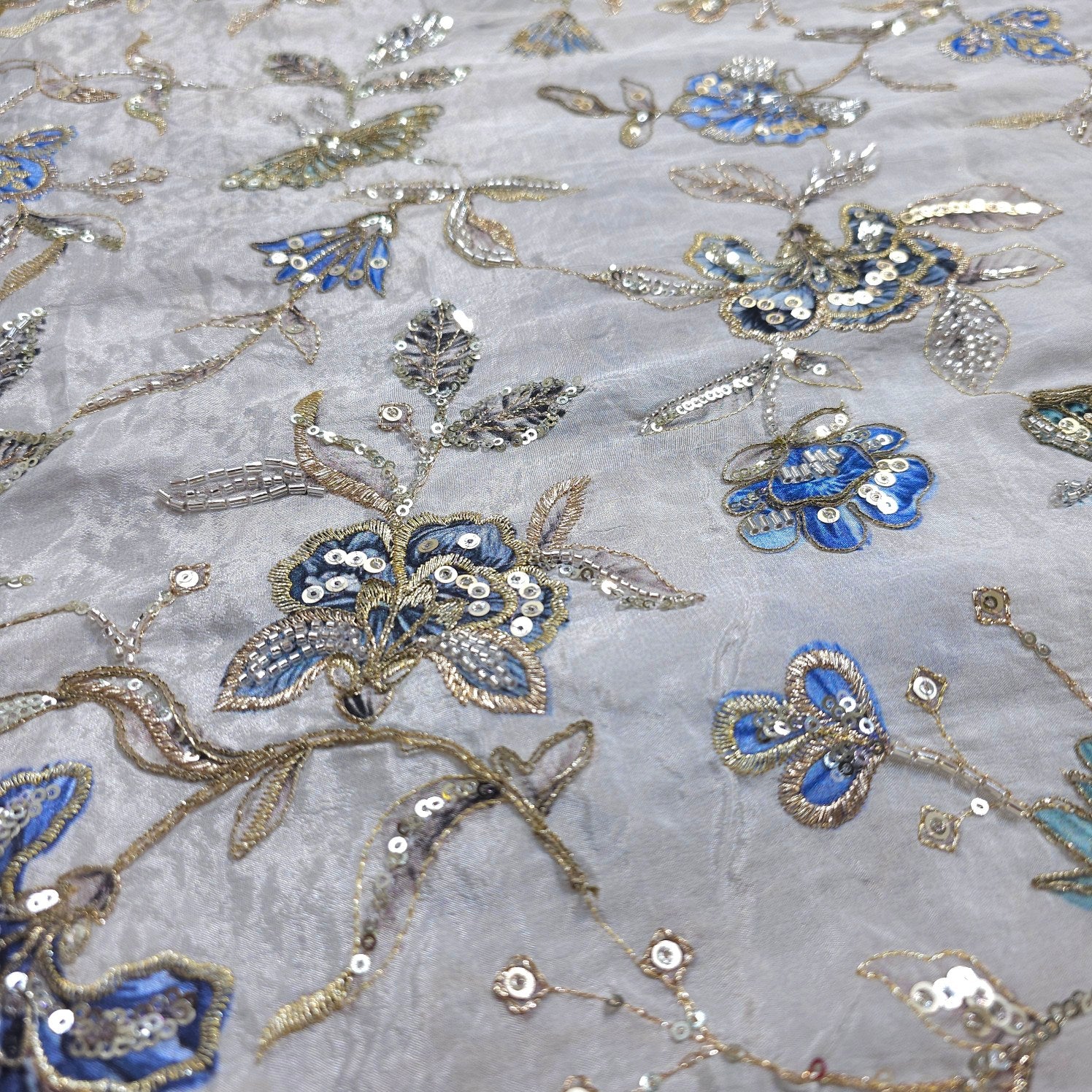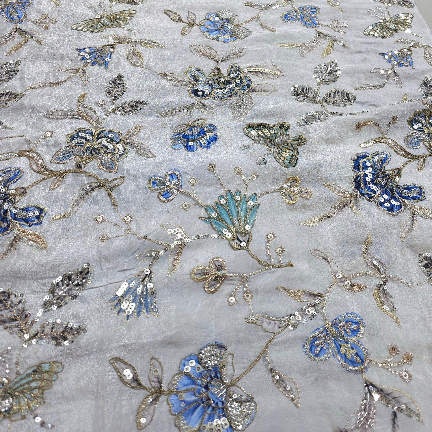 These elegant fabrics are designed on a soft, semi-sheer base and feature delicate floral & butterfly embroidery, highlighted with pastel colors and shimmering sequins. The intricate motifs create a charming, festive look that’s perfect for ethnic ensembles with a light, graceful appeal.