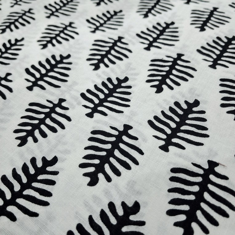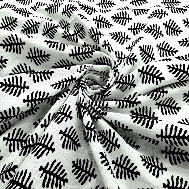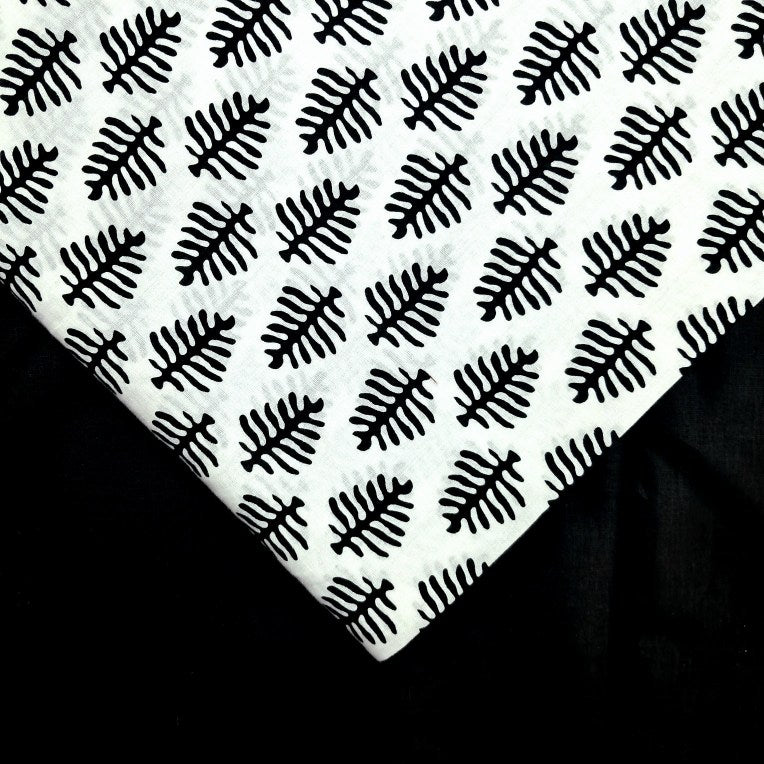This beautiful Warli Print on the cotton fabric in a striking black and white combination denotes distinctive folk art and culture of the Warli tribe. The design showcases intricate tribal motifs, including human figures, animals, trees, paisley, geometric, florals and rhythmic circular dance patterns, symbolizing community and celebration and also most importantly creativity. A timeless fabric with cultural significance and artistic appeal.