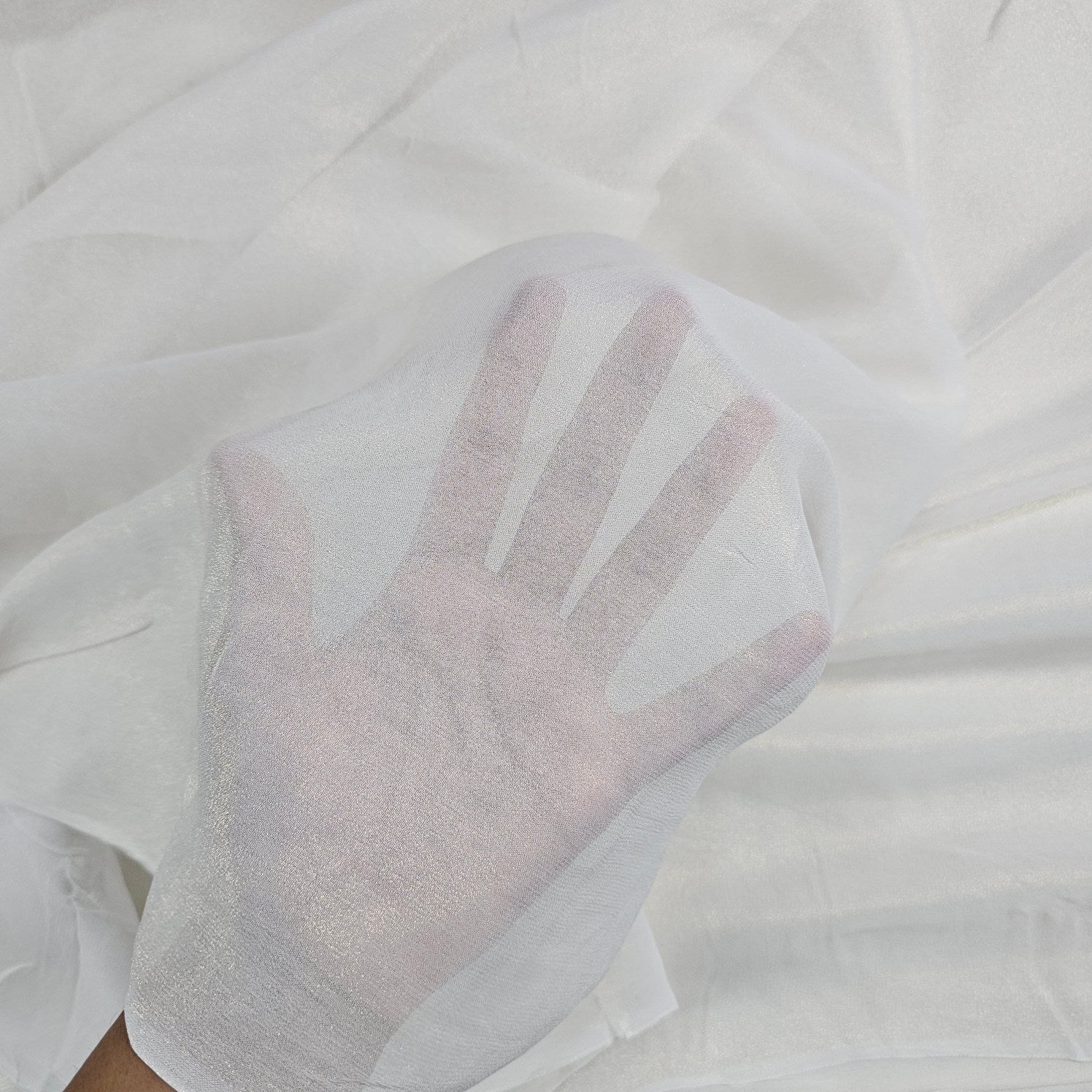 Make every moment sparkle with our Shimmer Georgette Fabric — a dazzling fusion of delicate texture and luminous shine. Light as air with a graceful, effortless drape, this fabric catches the light from every angle, adding a subtle glam to your silhouette without being overpowering. Whether you're designing flowy sarees, chic lehengas, or layered gowns, this fabric offers a perfect balance of elegance, fluidity, and festive charm.