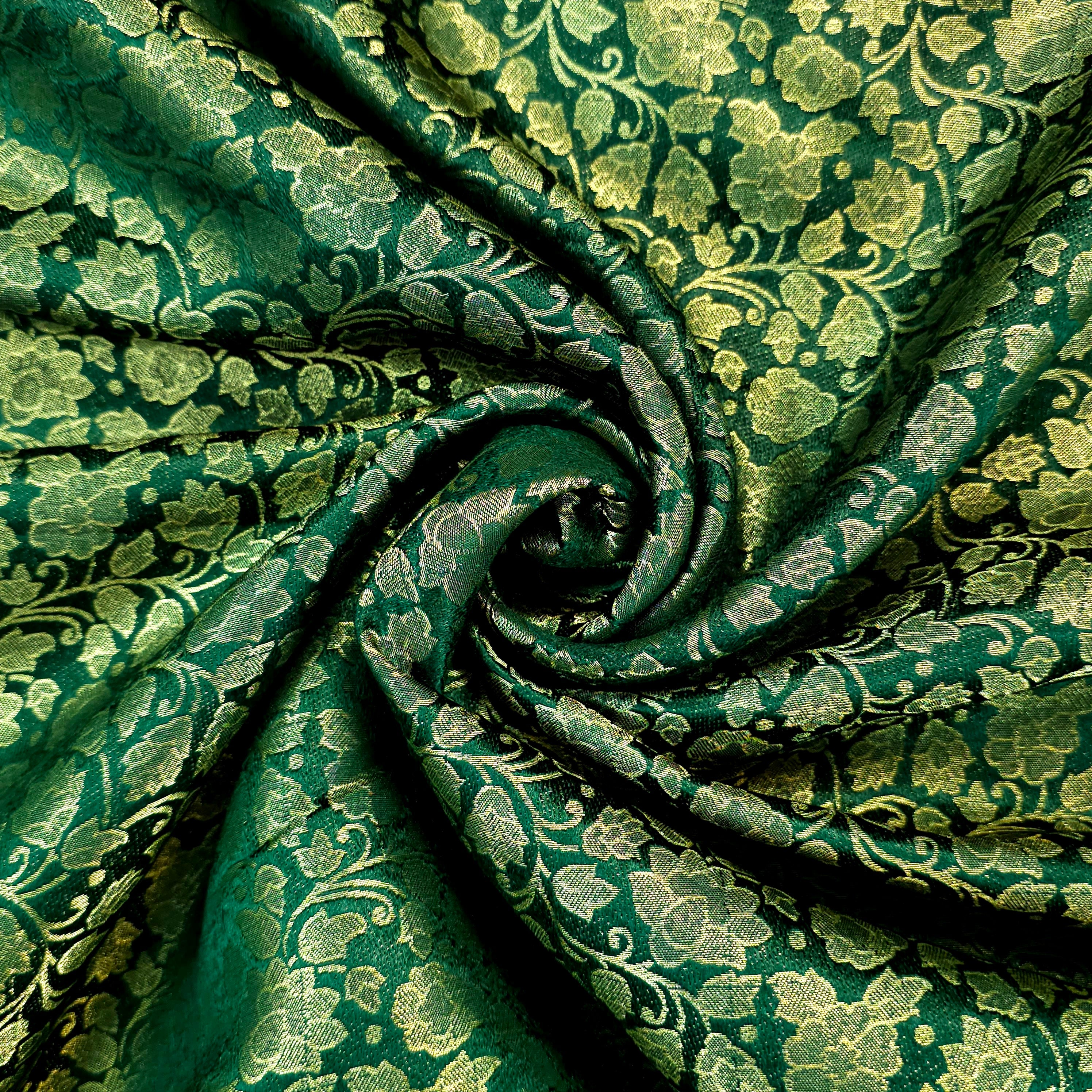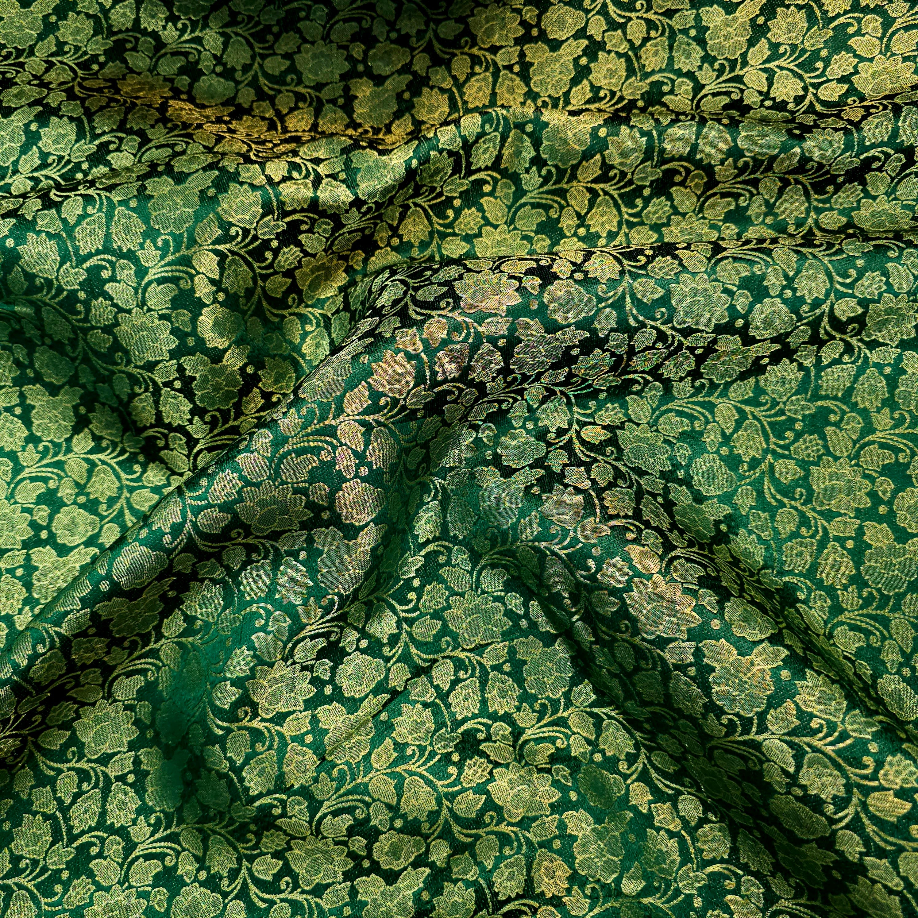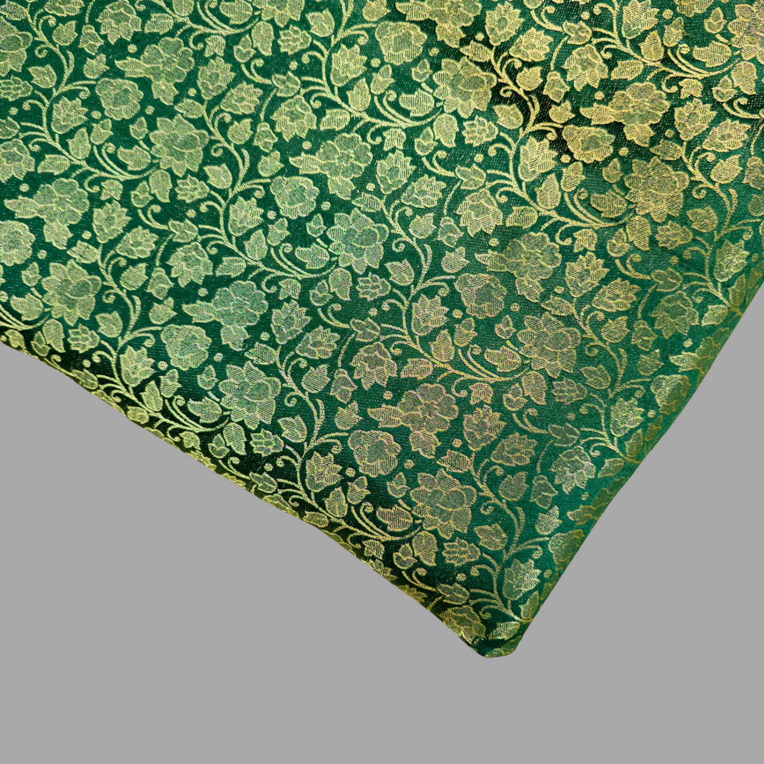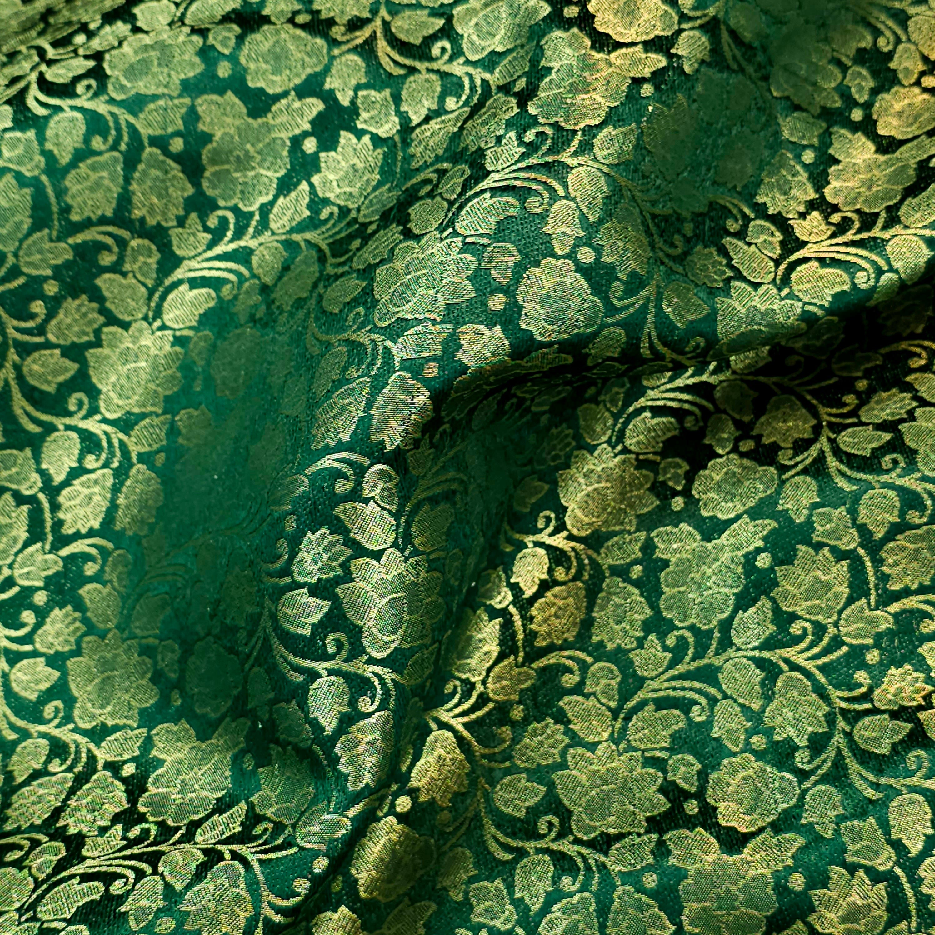An opulent Banarasi brocade fabric that captures the essence of timeless elegance with its intricate floral zari weave. The rich sheen and finely detailed motifs make it perfect for festive and bridal wear. Crafted with precision, this fabric exudes grandeur while offering a soft, smooth touch that drapes beautifully.
