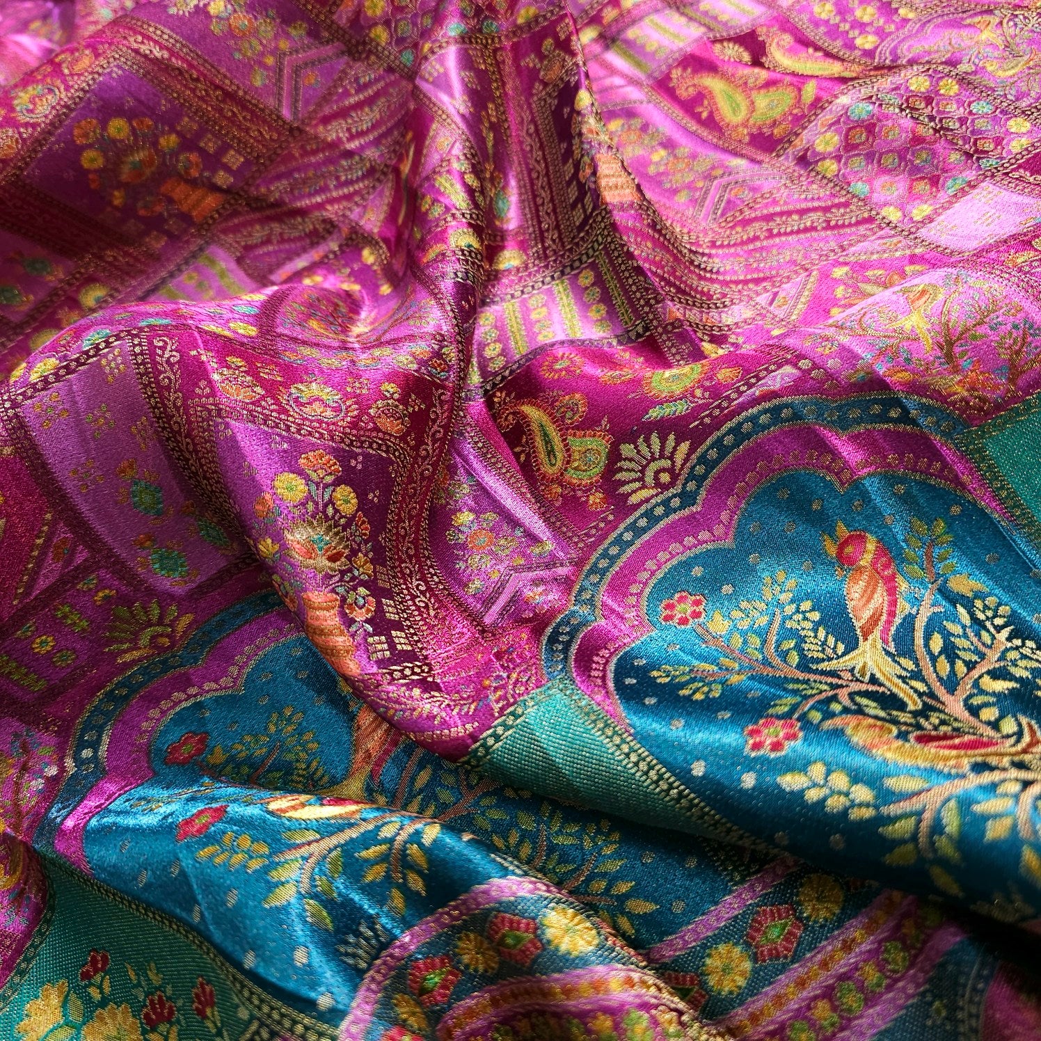 ✔ Premium Banarasi brocade with rich geometric and floral patterns